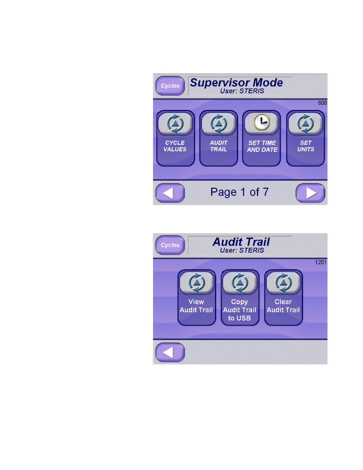 Press AUDIT TRAIL button to show Audit Trail options screen.