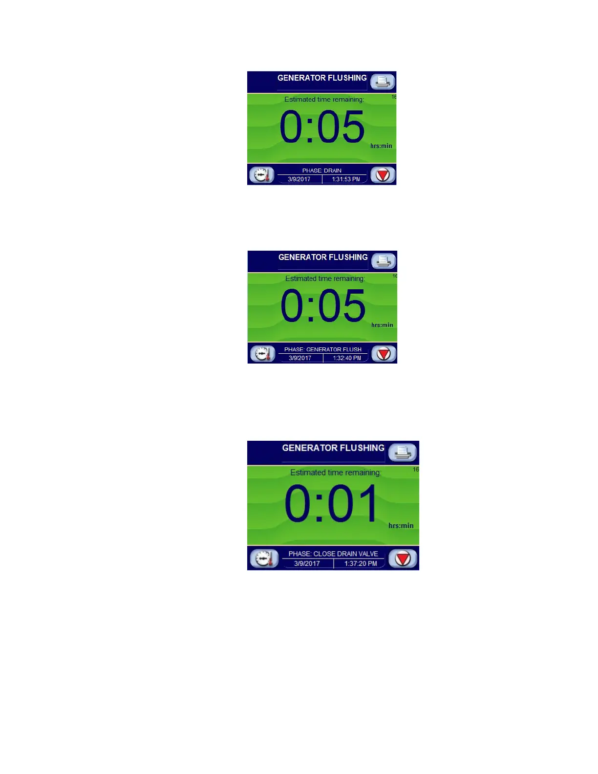 5 minutes). Generator water turns on while water in generator drains,
