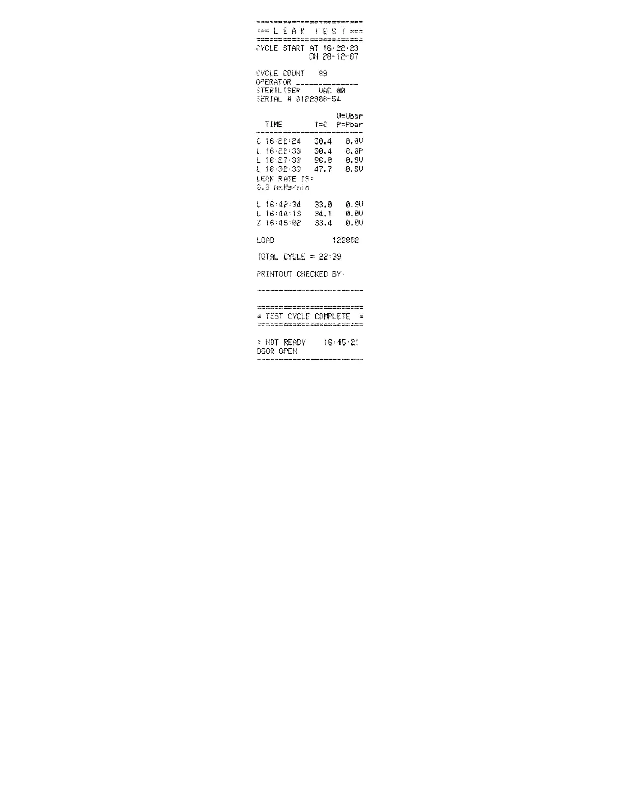 Amsco Evolution HC-600 - Figure 6-7. Leak Test Cycle Printout