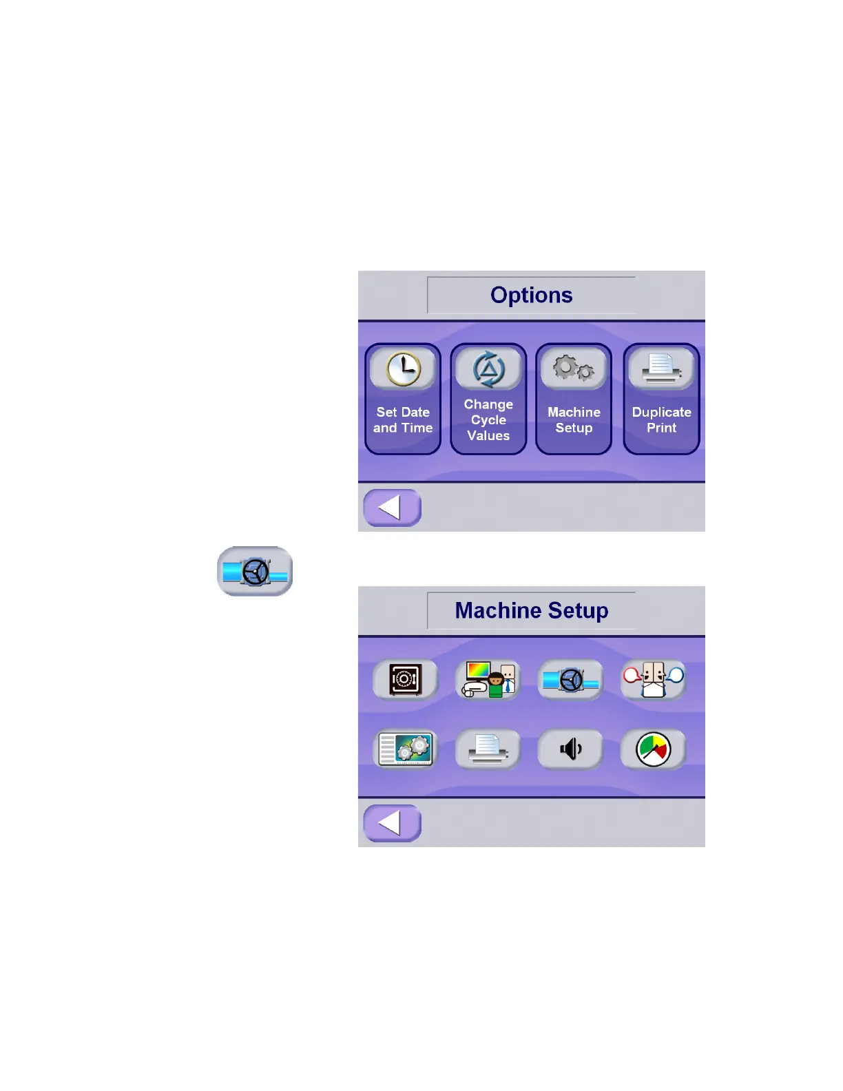 Utility Control is accessed by pressing Machine Setup at the options