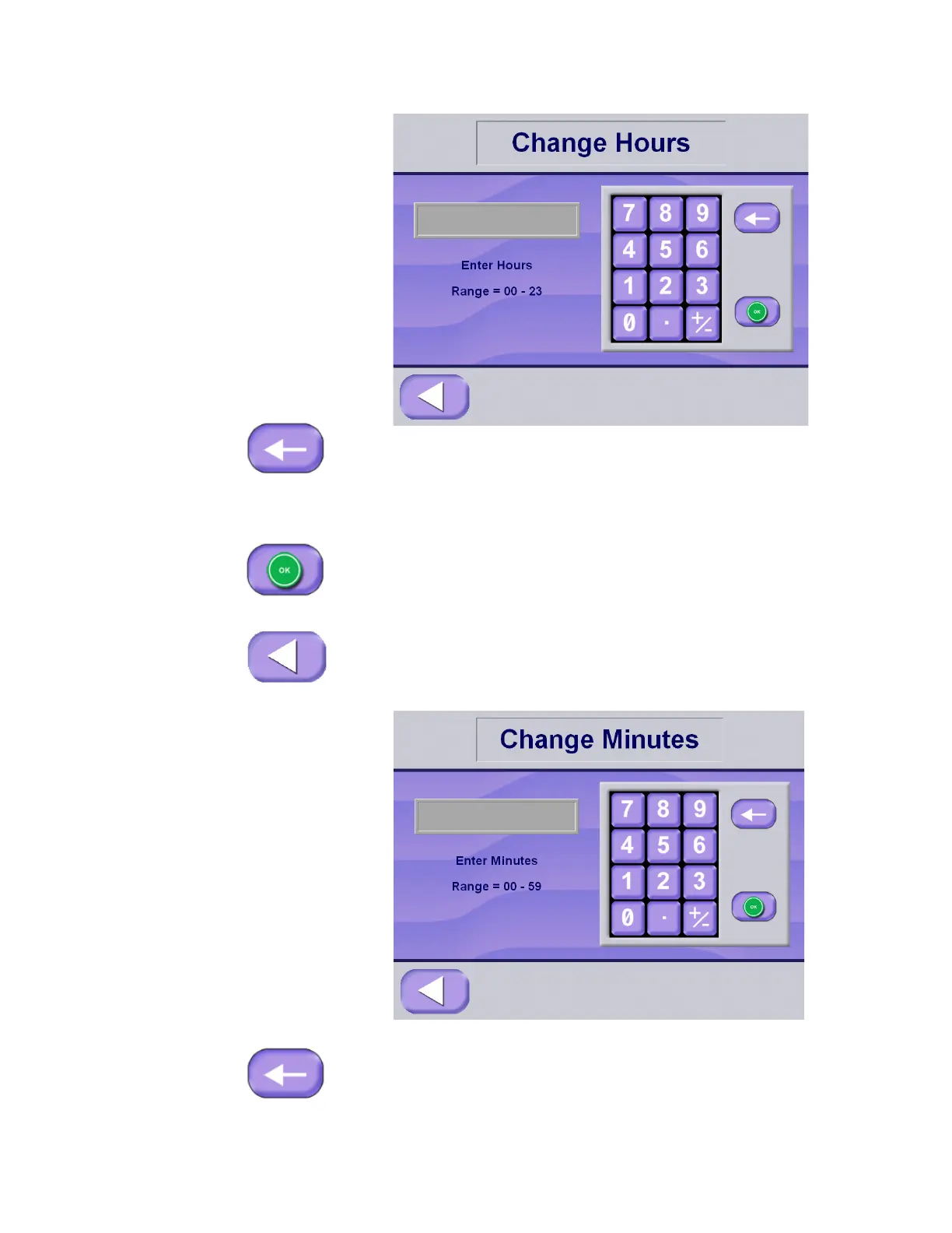 4. Change Minutes – use the touch screen key pad to enter the