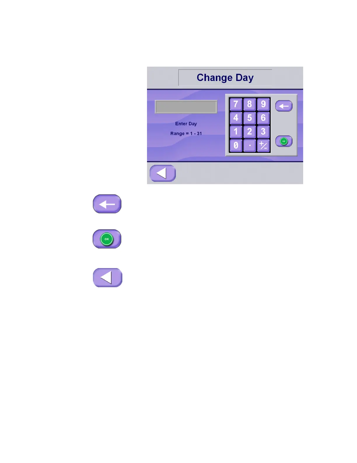 below appears. Enter the day value using the keypad. The day value