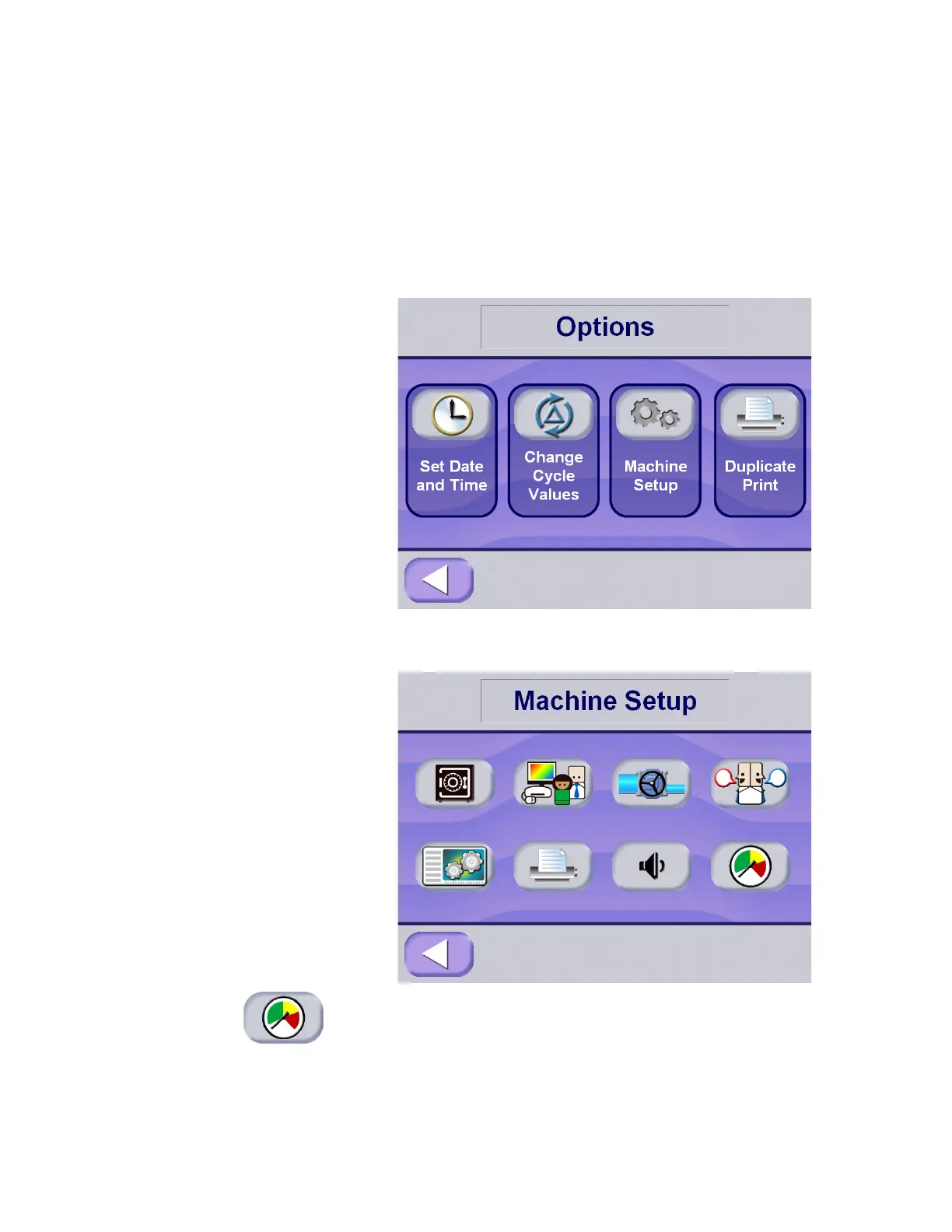 screen; at Options screen press Machine Setup.