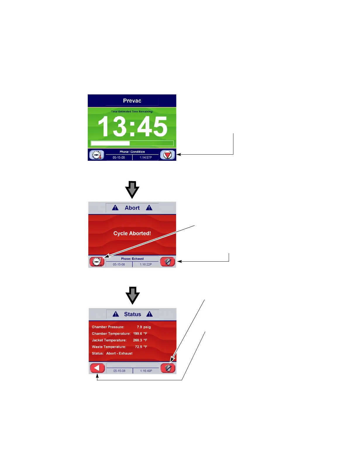 Figure 5-11. Cycle Abort Button and Screens