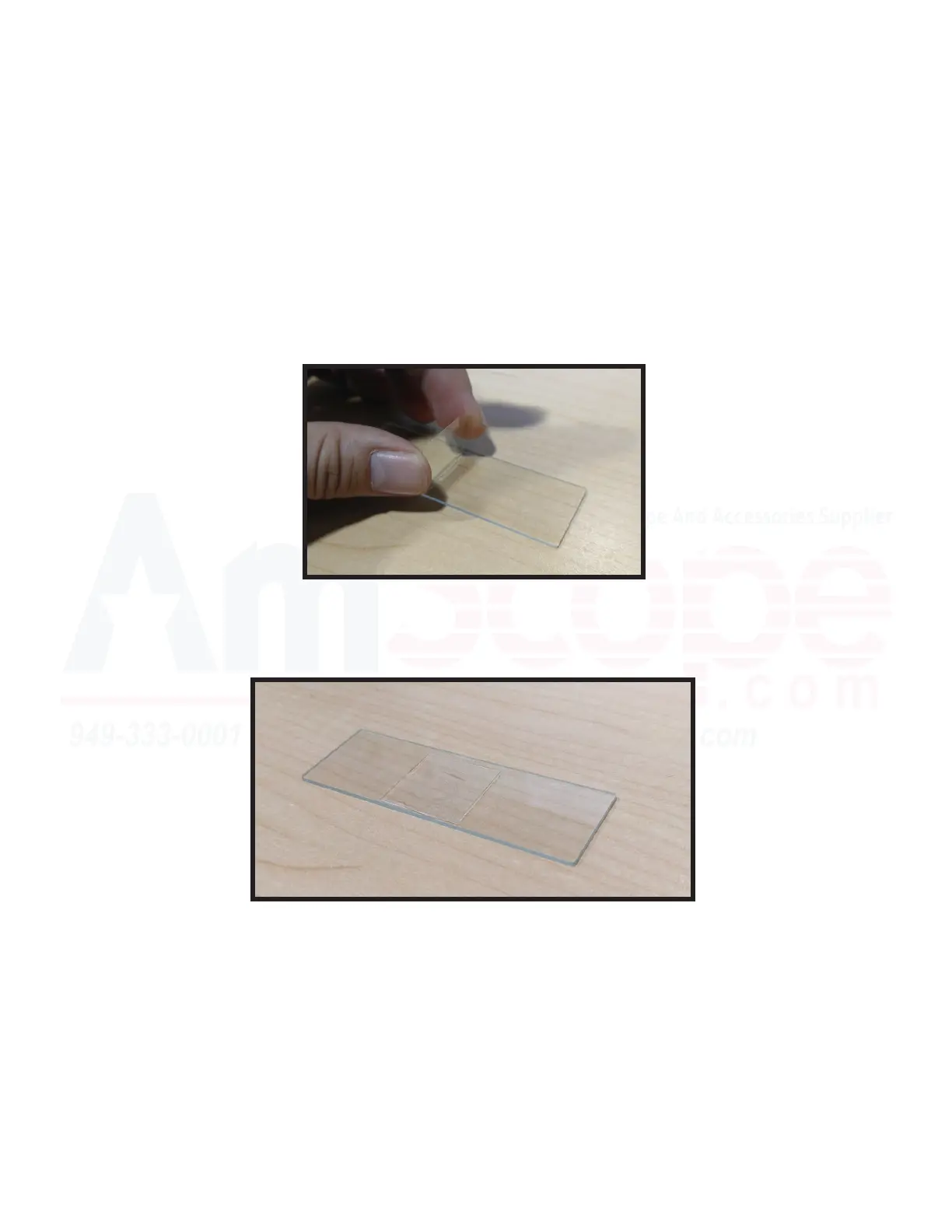 3. Place the cover slip at an approximately 45 degree angle to the slide with one edge touching the water drop.