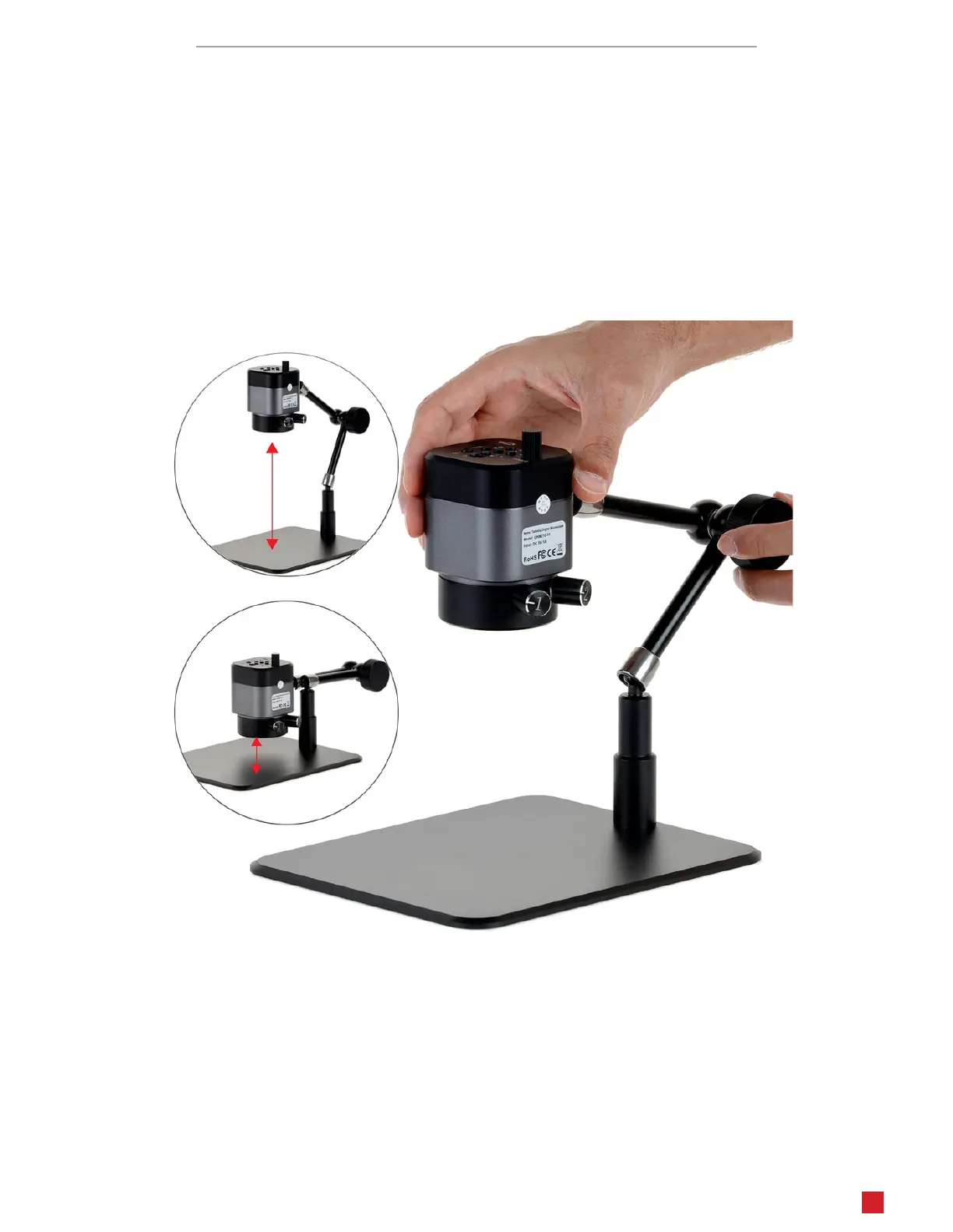 move. Posion the microscope as desired, then ghten the locking knob. Avoid extending the arm beyond the rear edge