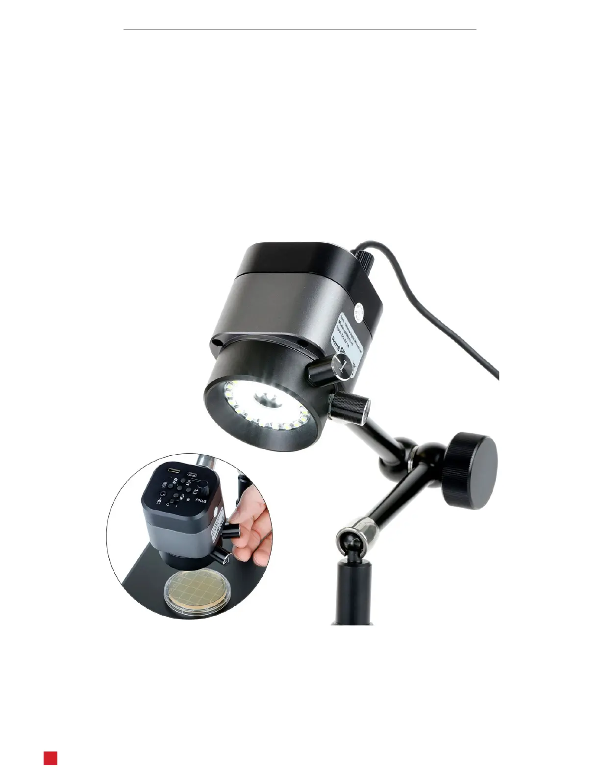 inner ring light which provides direct illuminaon which is well-suited for viewing surface details such as scratches and