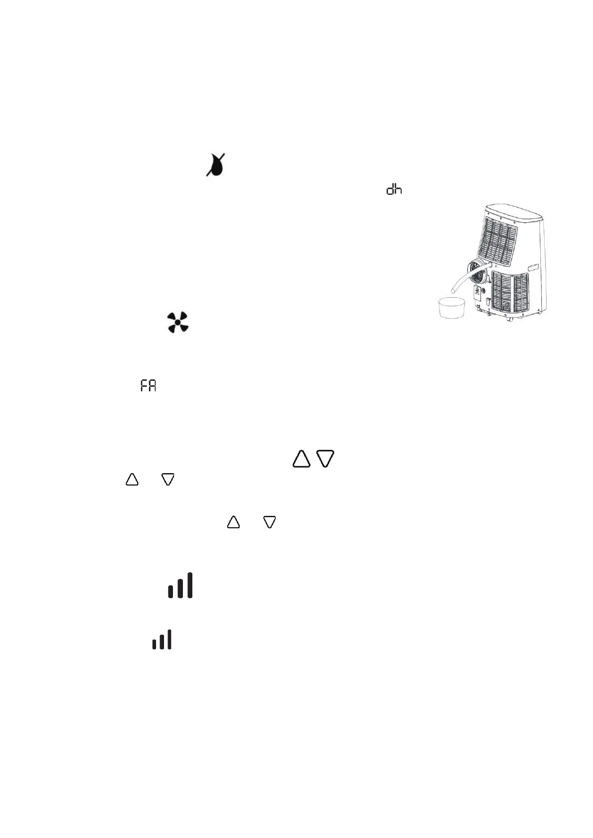 When the "Dehumidification" mode is selected, the display shows . The fan speed is fixed at slow.