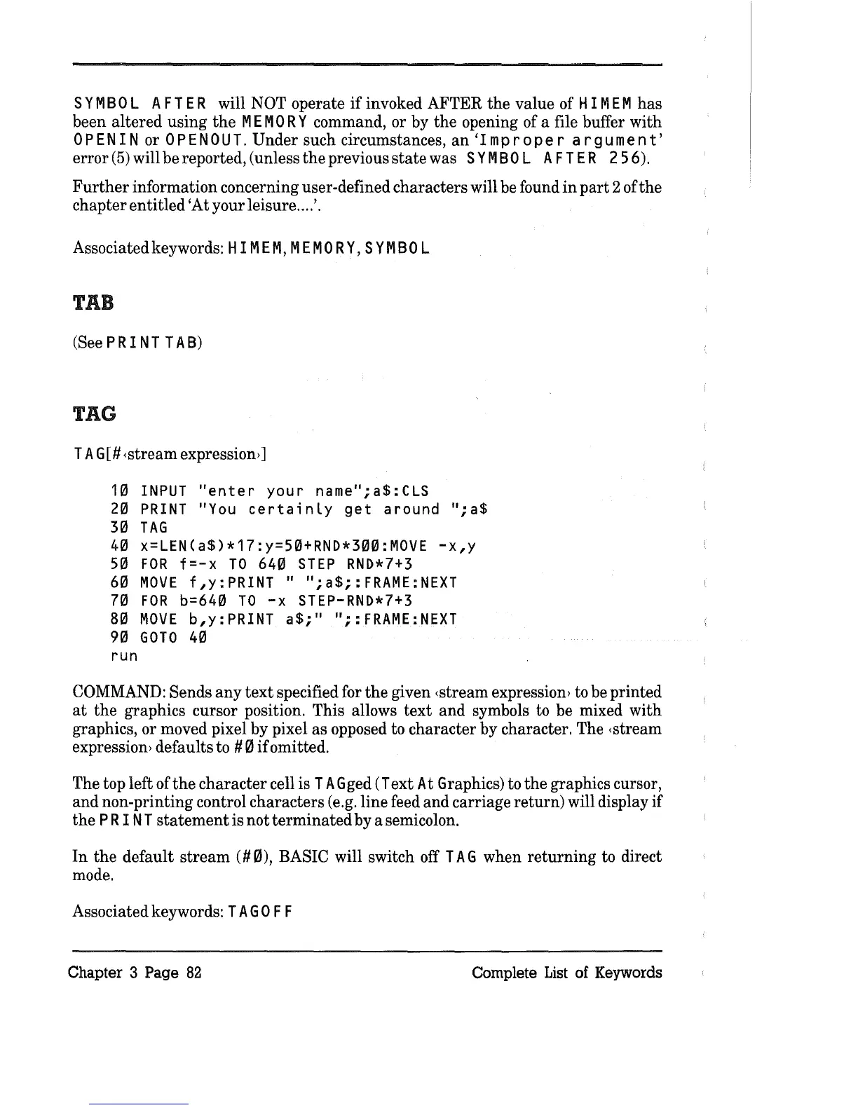 f,y:PRINT " ";a$;:FRAME:NEXT