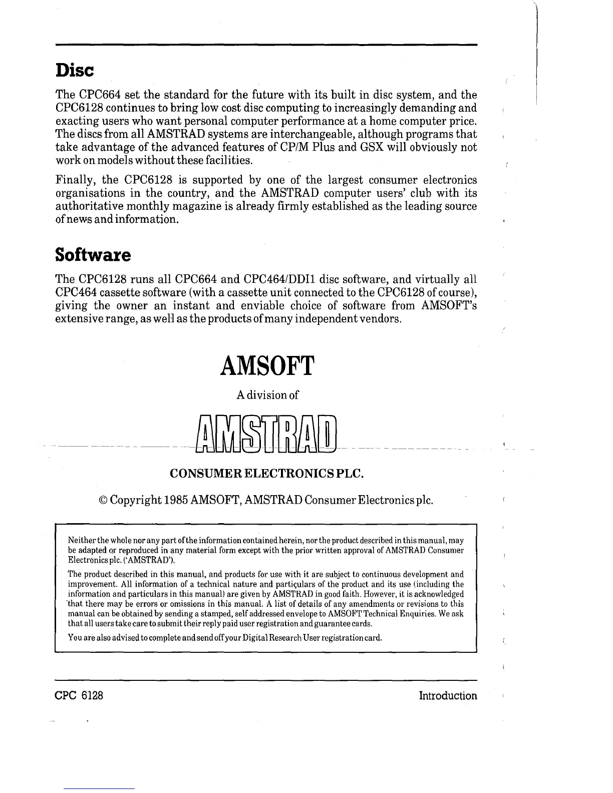 © Copyright 1985 AMSOFT, AMSTRAD Consumer Electronics plc.