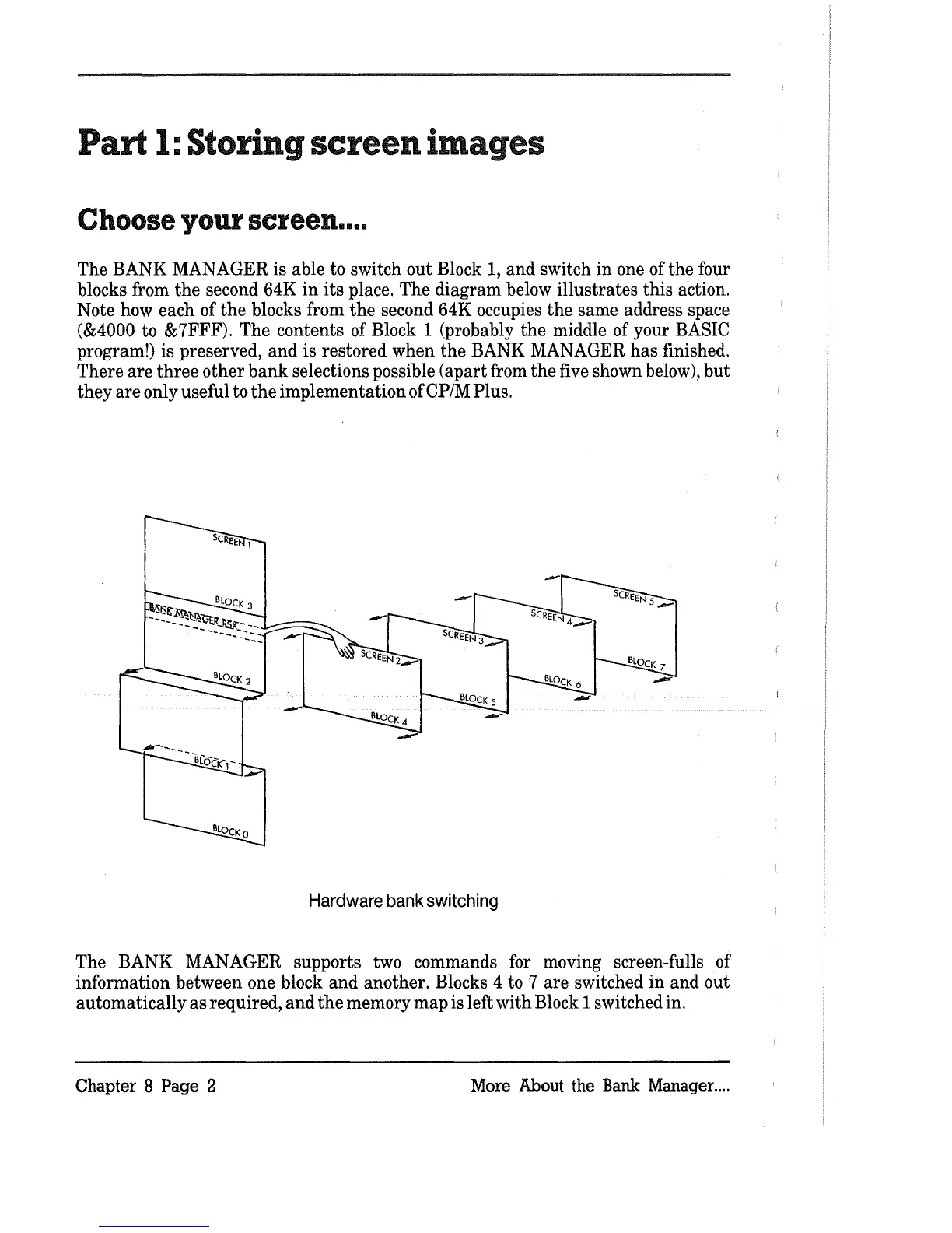 The BANK MANAGER supports two commands for moving screen-fulls of