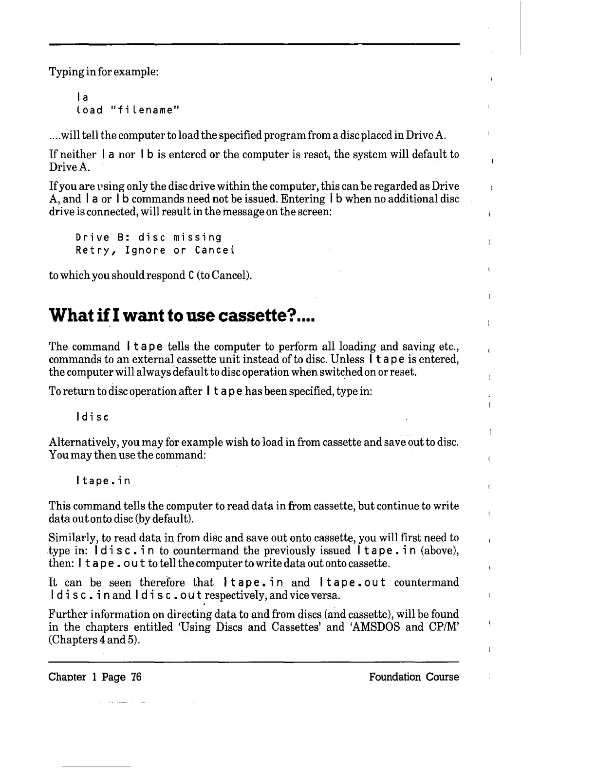 Alternatively, you may for example wish to load in from cassette and save out to disc.