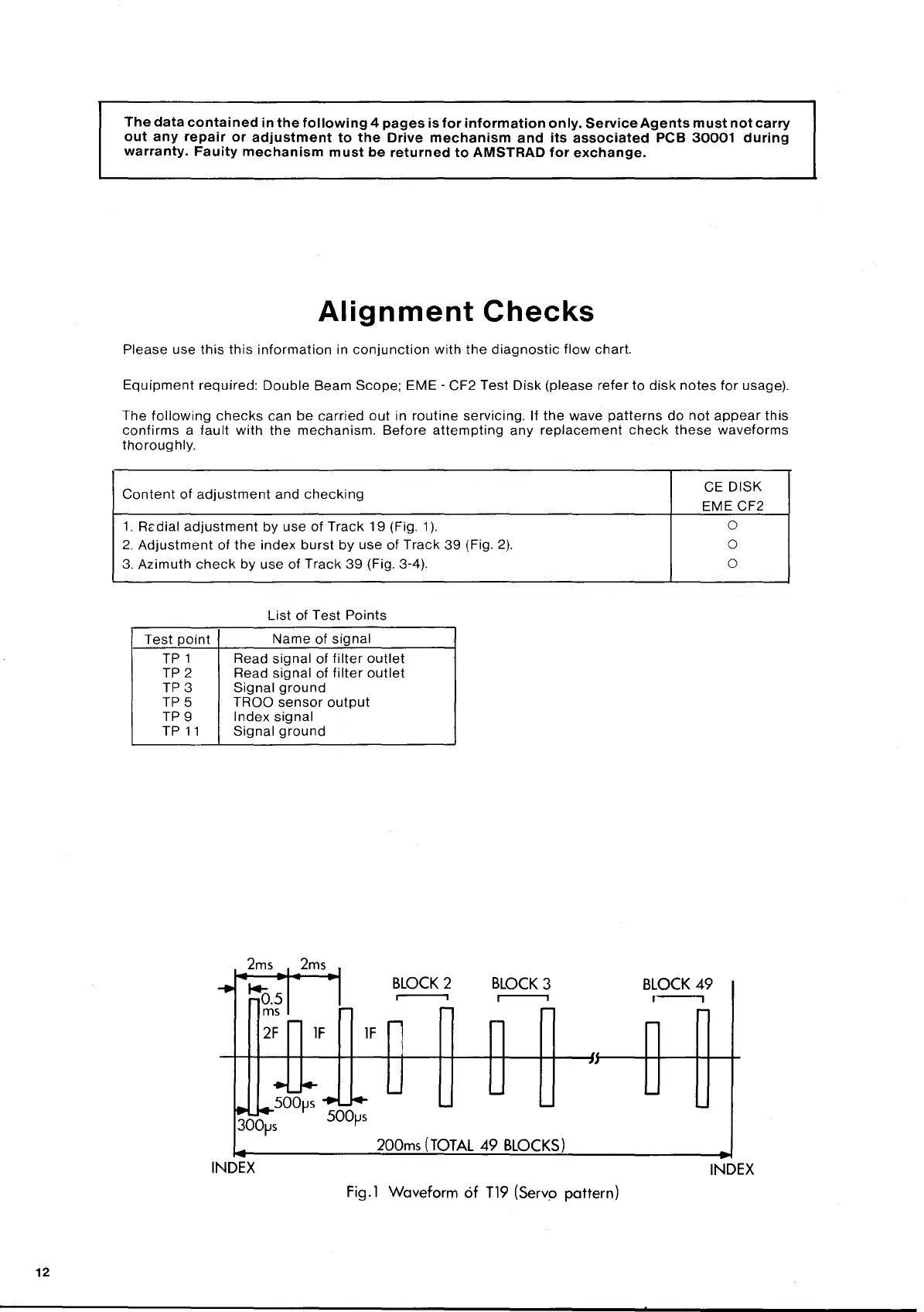 AMSTRAD CPC6128 - Disk Drive Alignment Checks; Adjustment and Checking Content; Alignment Test Points
