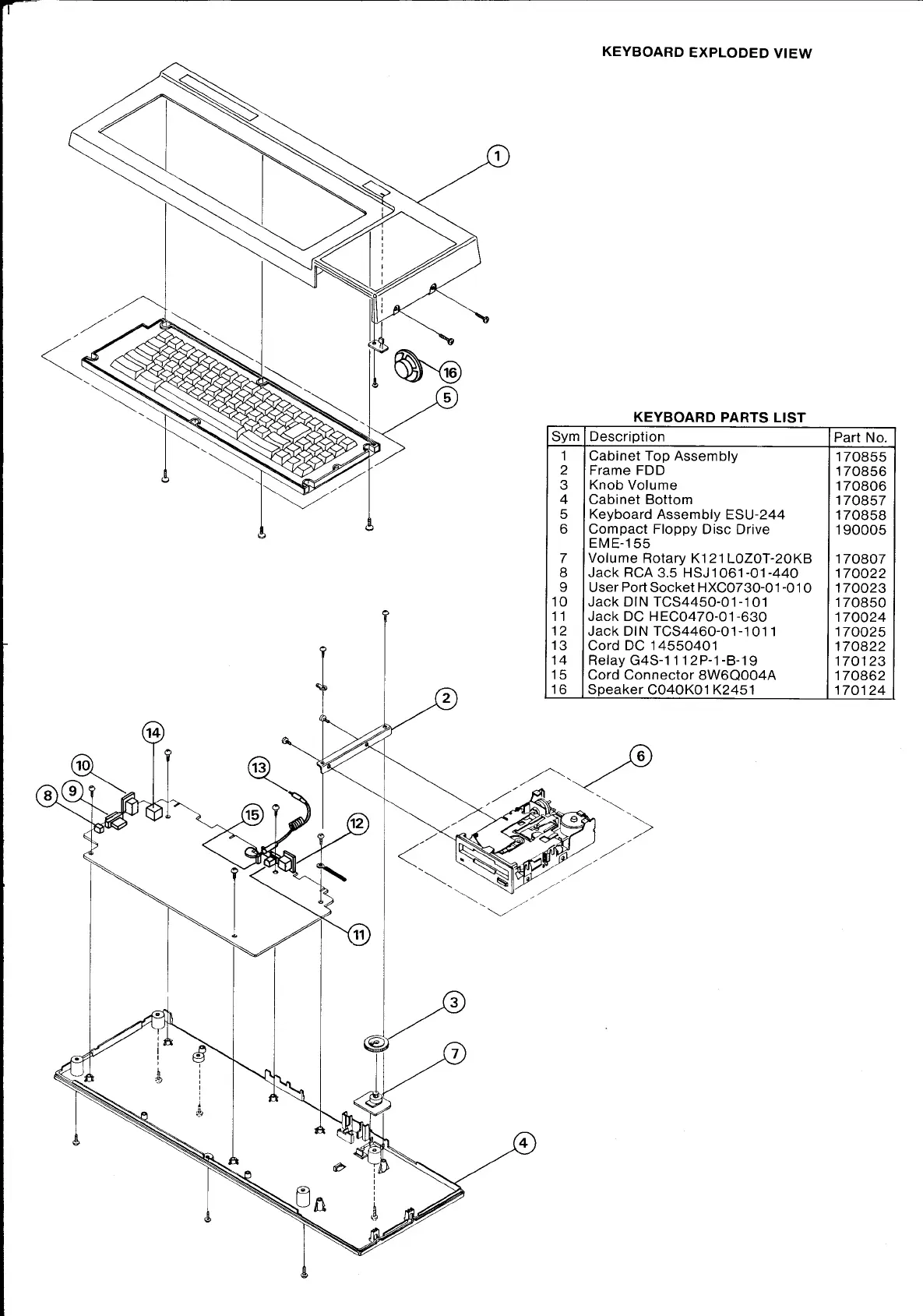 AMSTRAD CTM644 - Keyboard Exploded Diagram; Keyboard Parts Inventory