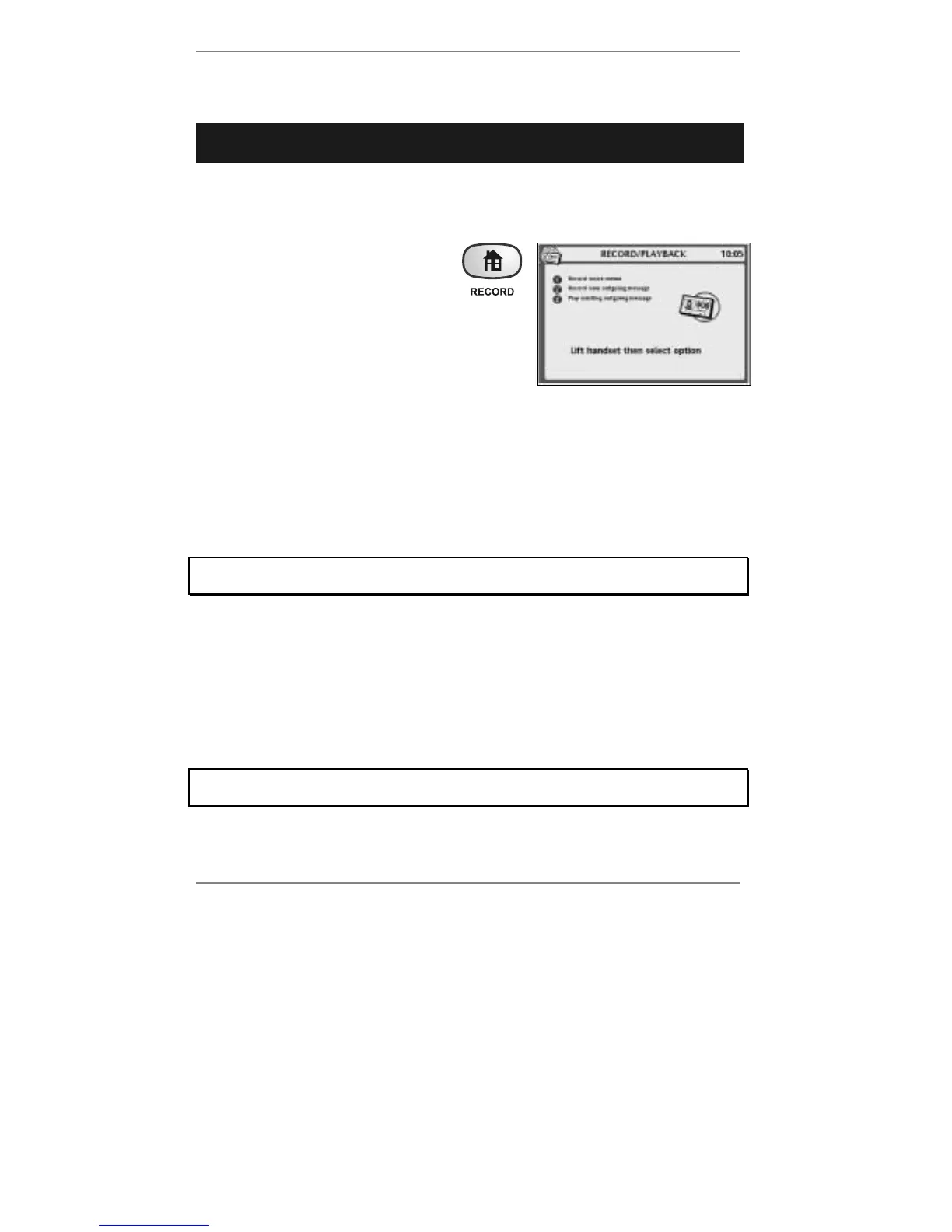 FAST TRACK: Hold down RECORD button, press 1, record message,