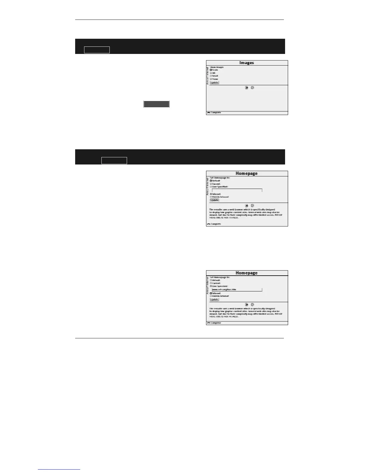 FAST TRACK: Press INTERNET, 5, 3, 1, select required option, select