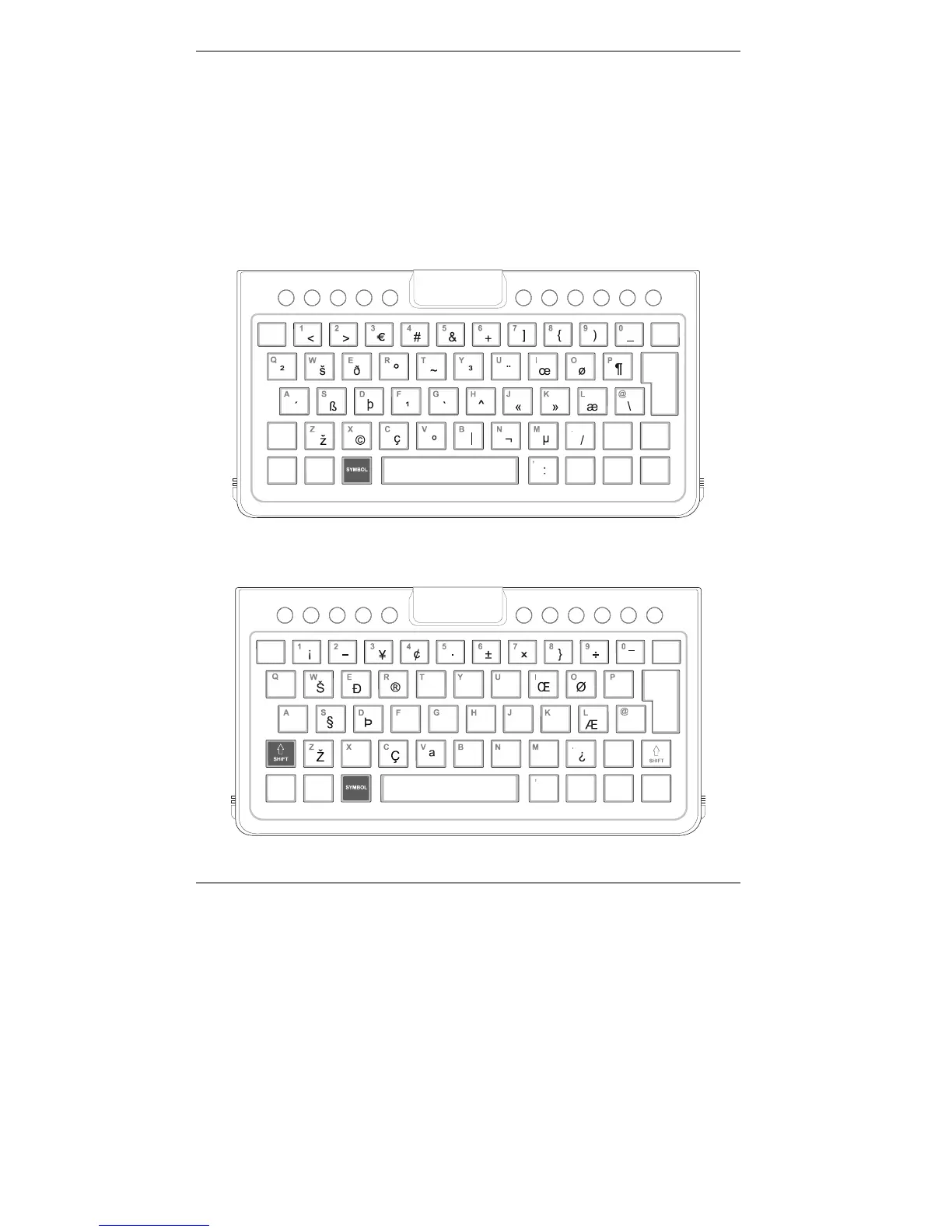 ♦ There is a further set of characters (see diagram below). These are available by