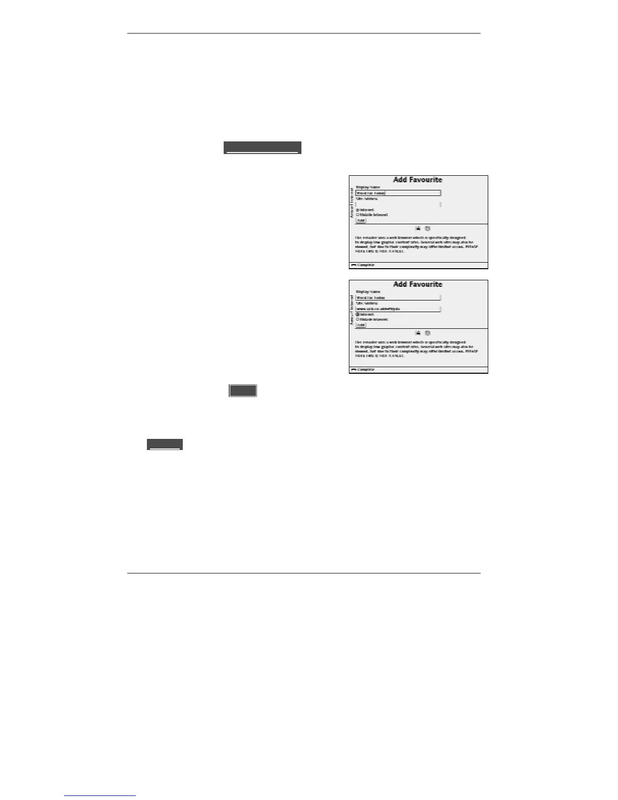 Use this procedure if you wish to add known page addresses to the favourites list