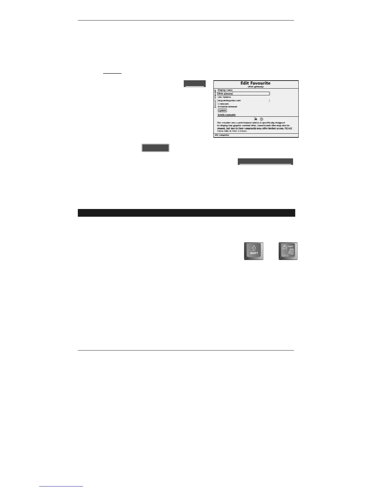 1. Press INTERNET, 3 to display the list of favourites. Note after each favourite the