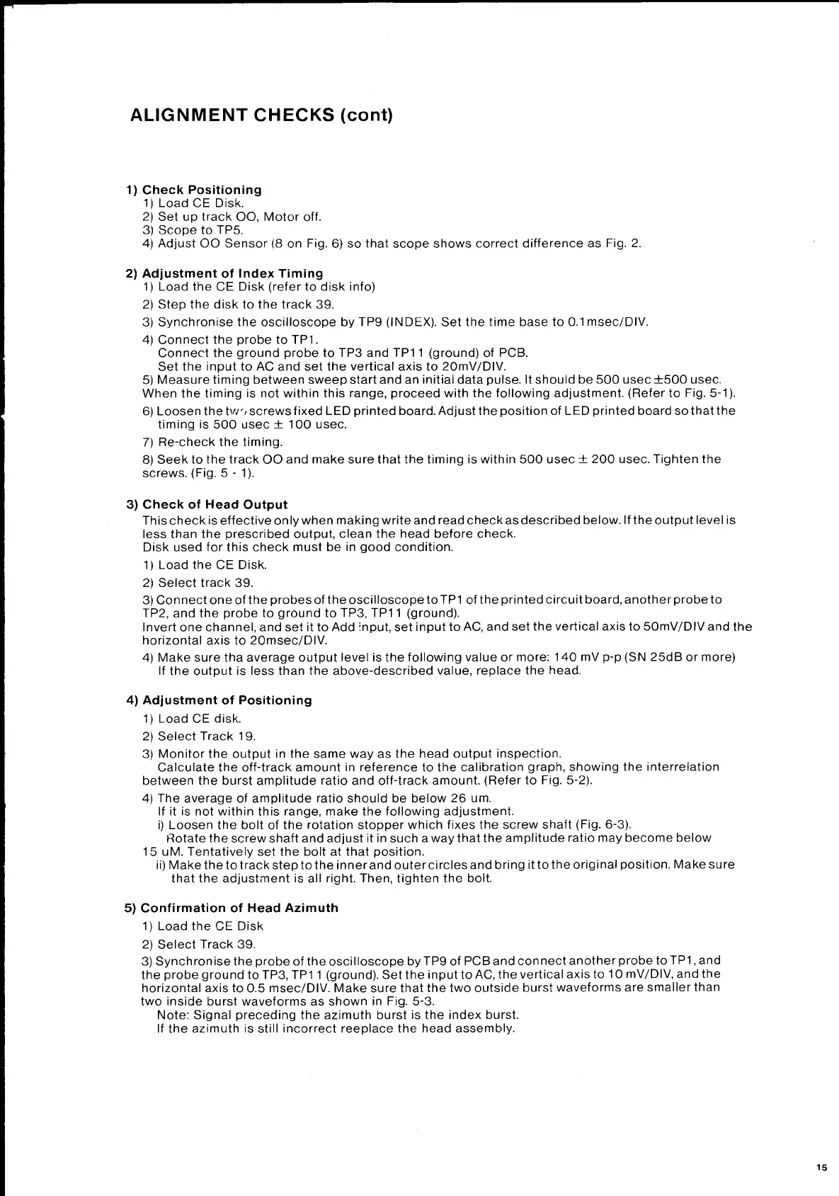 AMSTRAD GT65 - Disk Drive Alignment Procedures; Check Positioning; Adjustment of Index Timing; Check of Head Output