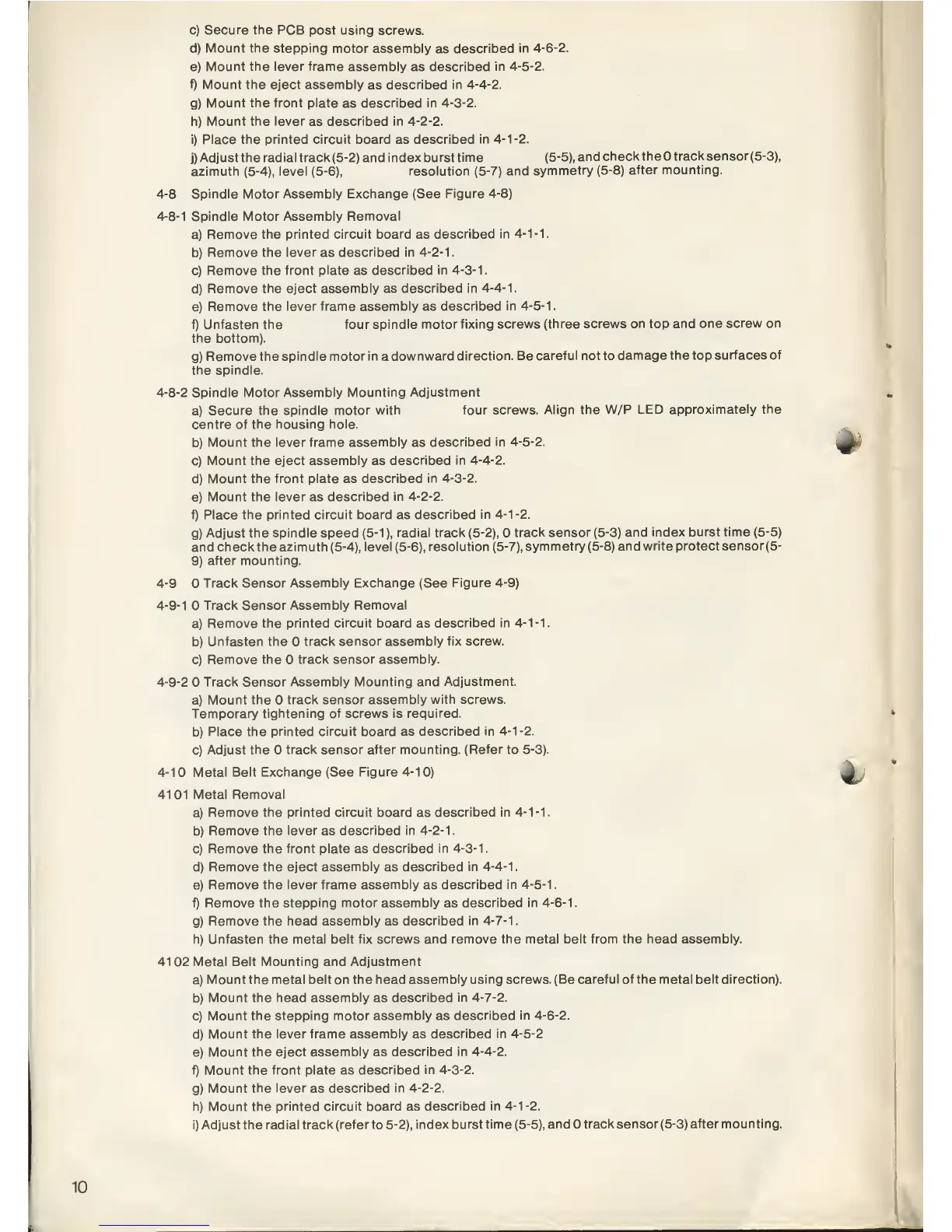 Remove the stepping motor assembly as described