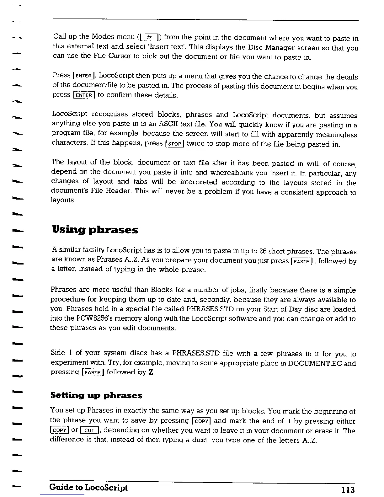 AMSTRAD PCW8256 - Using Phrases; Setting up Phrases