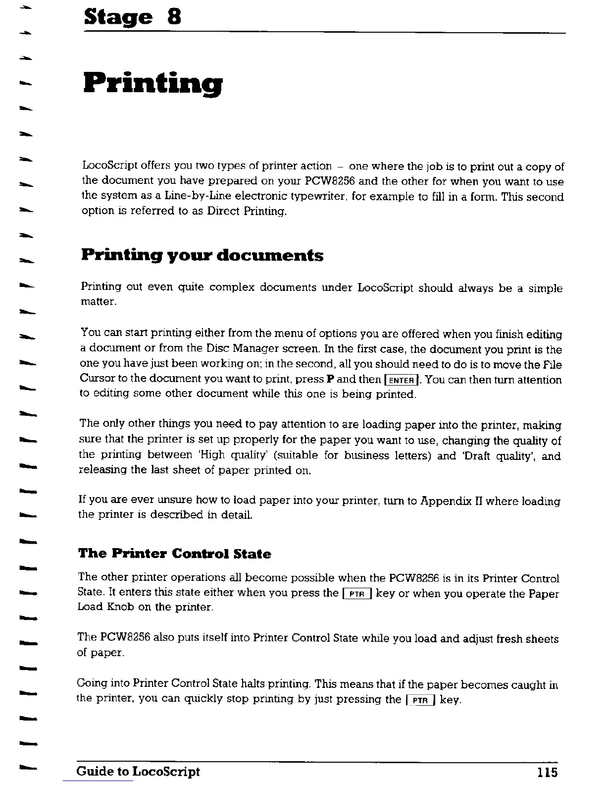 AMSTRAD PCW8256 - Printing; Printing Your Documents; The Printer Control State