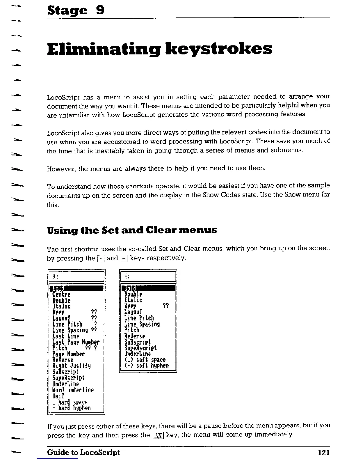 AMSTRAD PCW8256 - Eliminating Keystrokes; Using the Set and Clear Menus