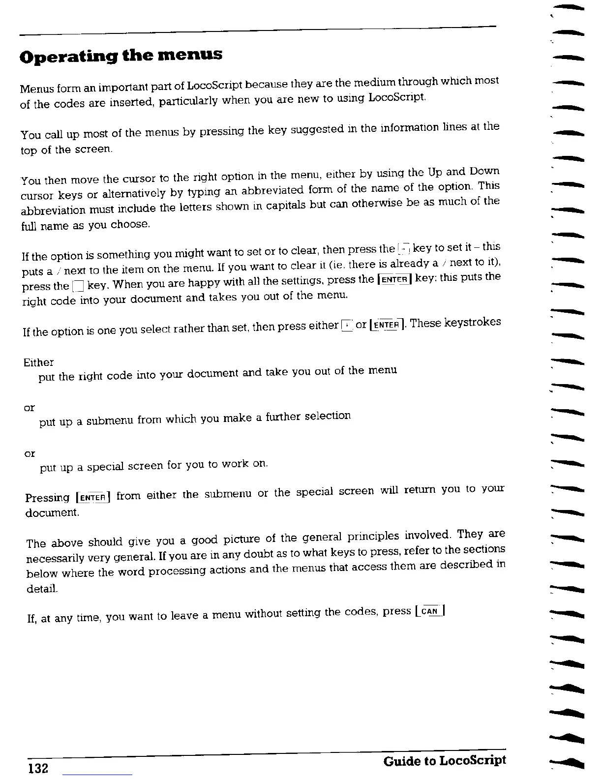 AMSTRAD PCW8256 - Operating the Menus