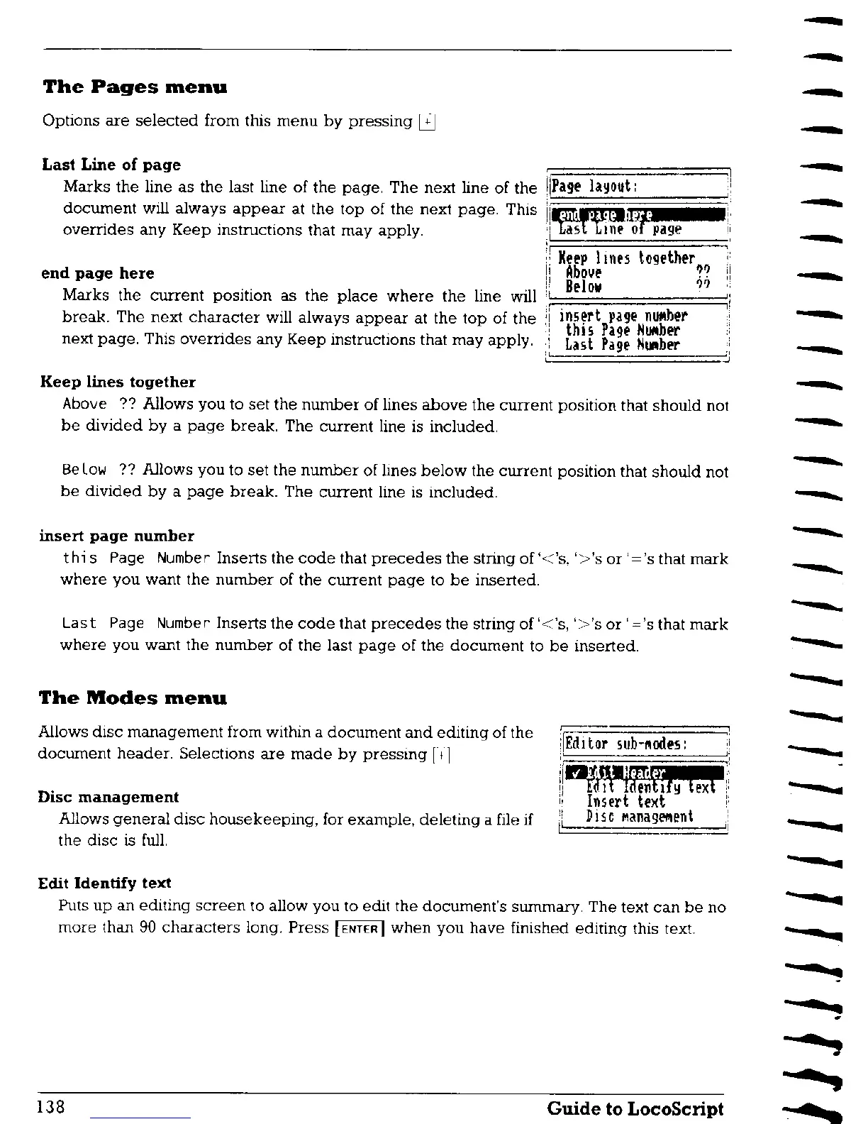 AMSTRAD PCW8256 - The Pages Menu; Last Line of Page; End Page here
