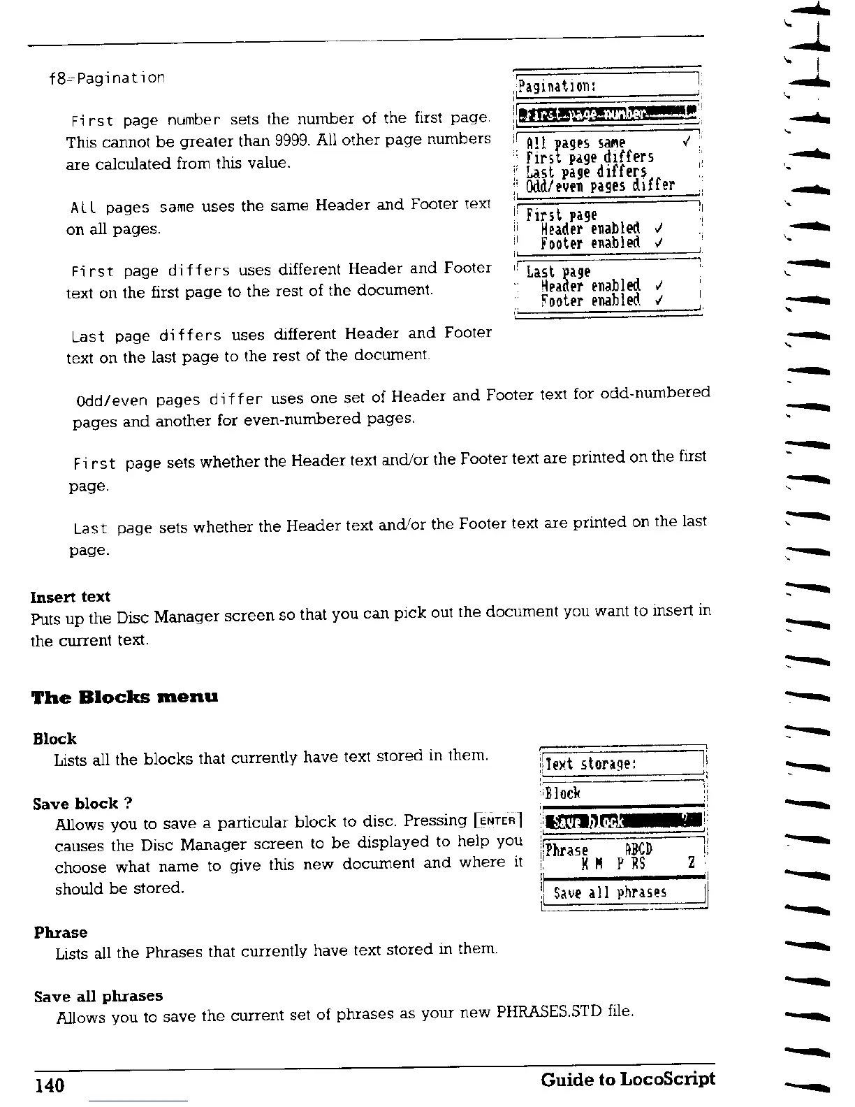 AMSTRAD PCW8256 - The Blocks Menu; Insert Text; Block