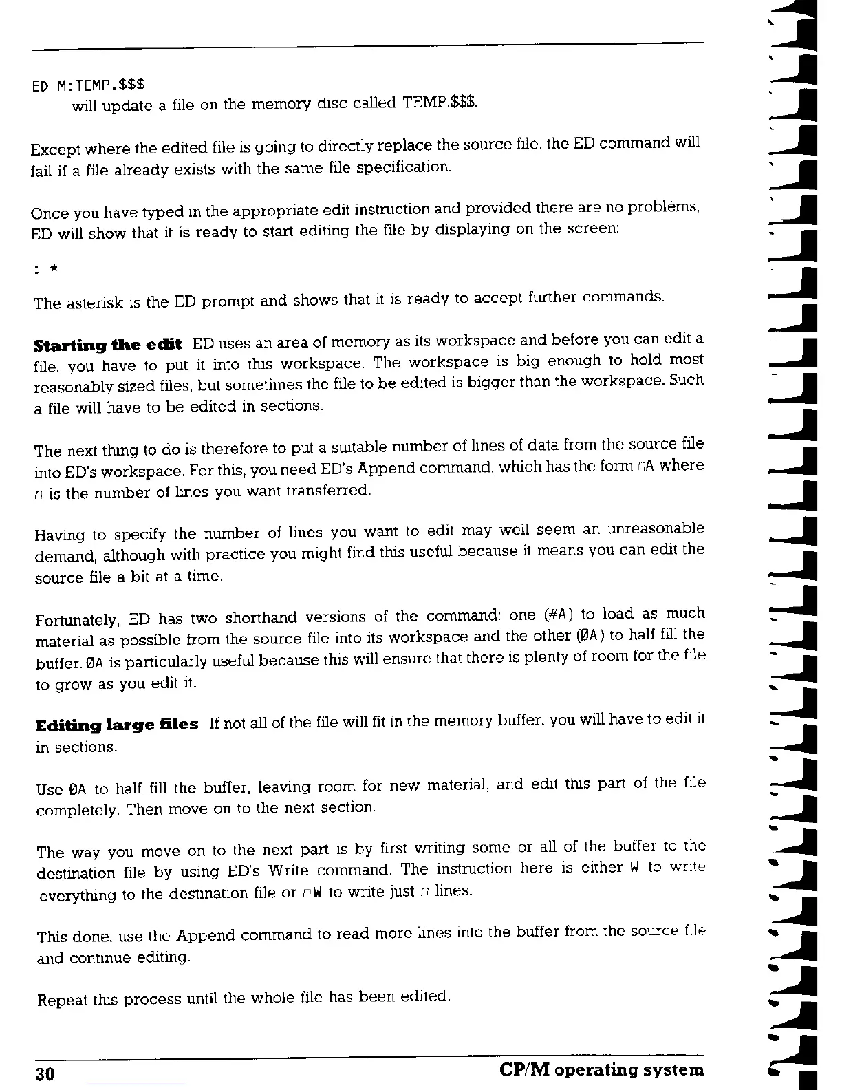 AMSTRAD PCW8256 - Starting the Edit; Editing Large Files