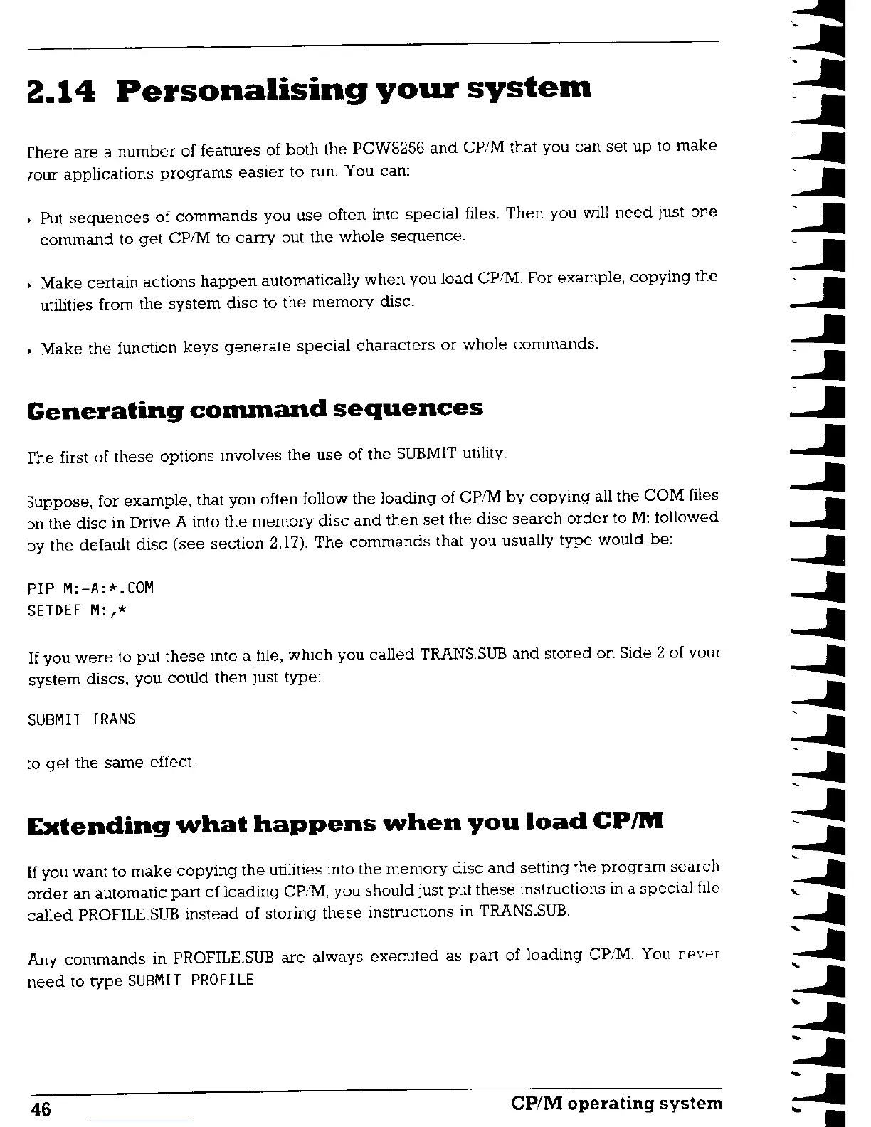 AMSTRAD PCW8256 - Personalising Your System; Generating Command Sequences; Extending What Happens When You Load CP;M