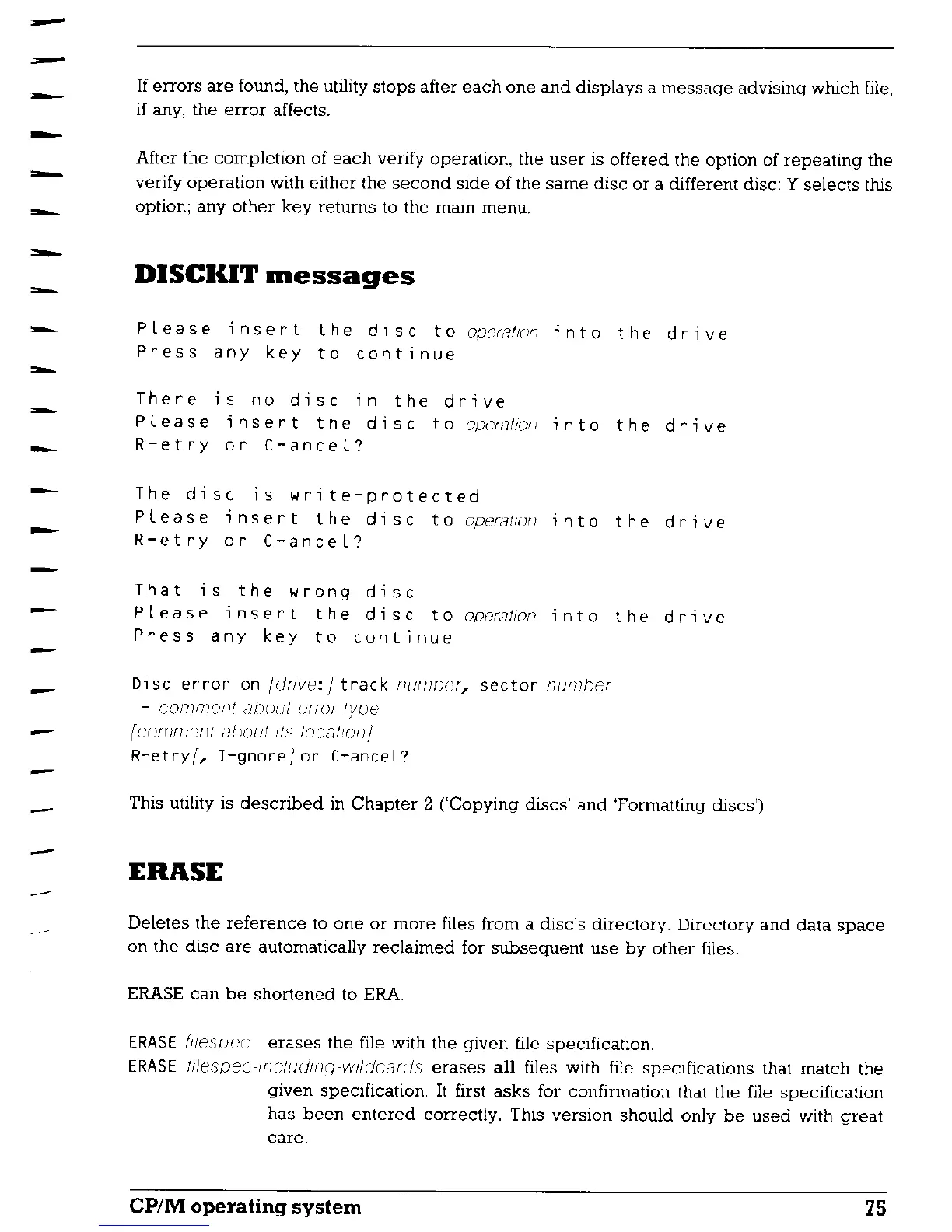 AMSTRAD PCW8256 - DISCKIT Messages; Erase