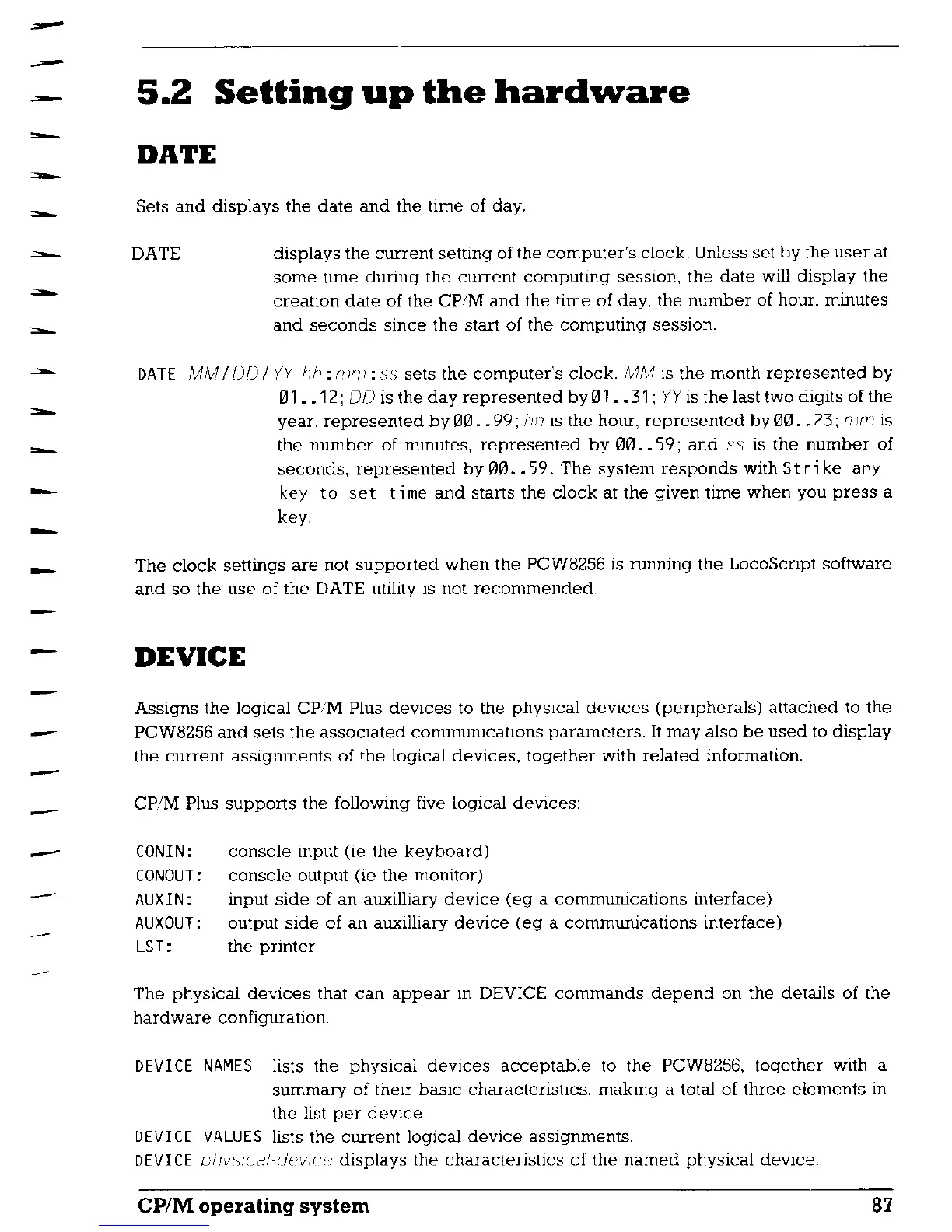 AMSTRAD PCW8256 - Date; Device