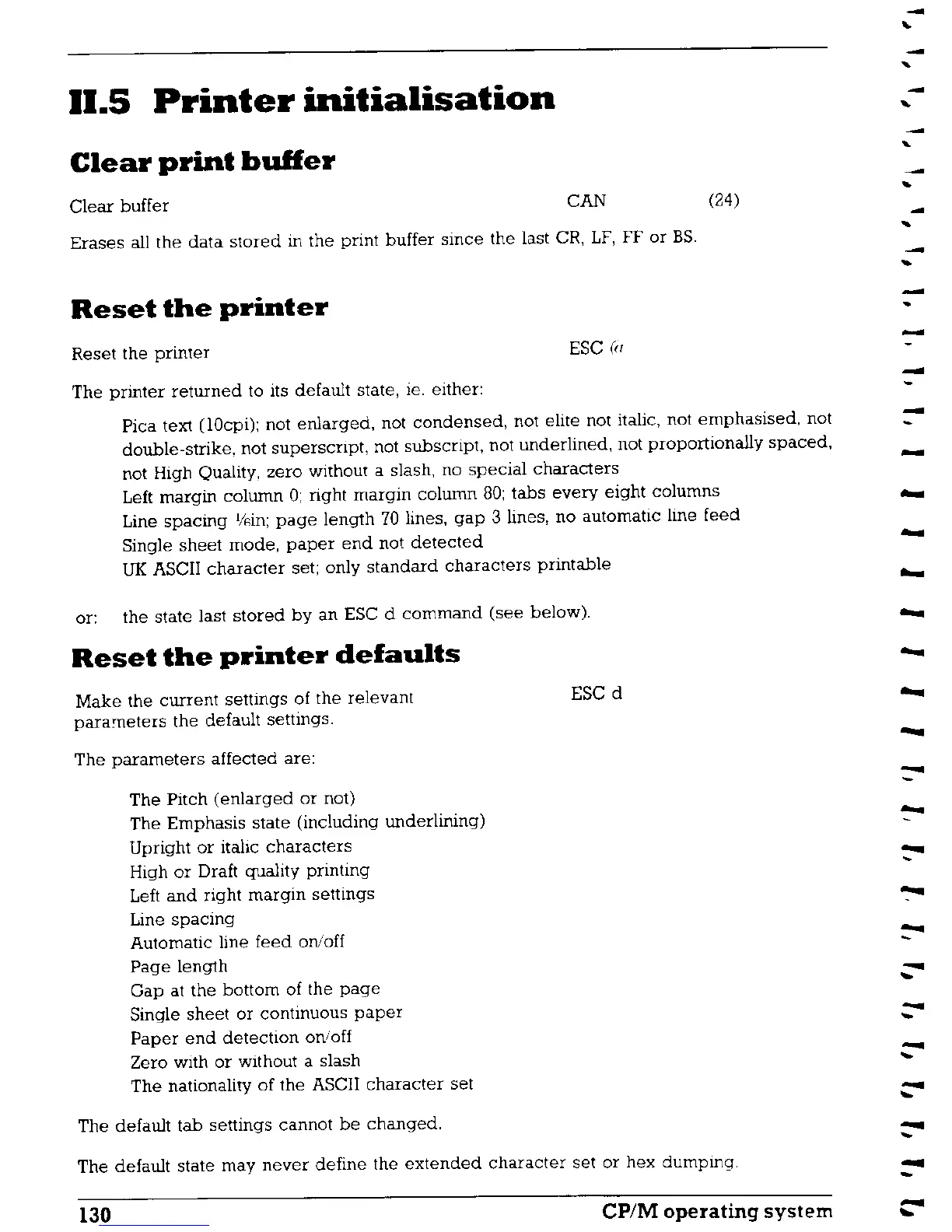 AMSTRAD PCW8256 - Printer Initialisation; Clear Print Buffer; Reset the Printer; Reset the Print Defaults