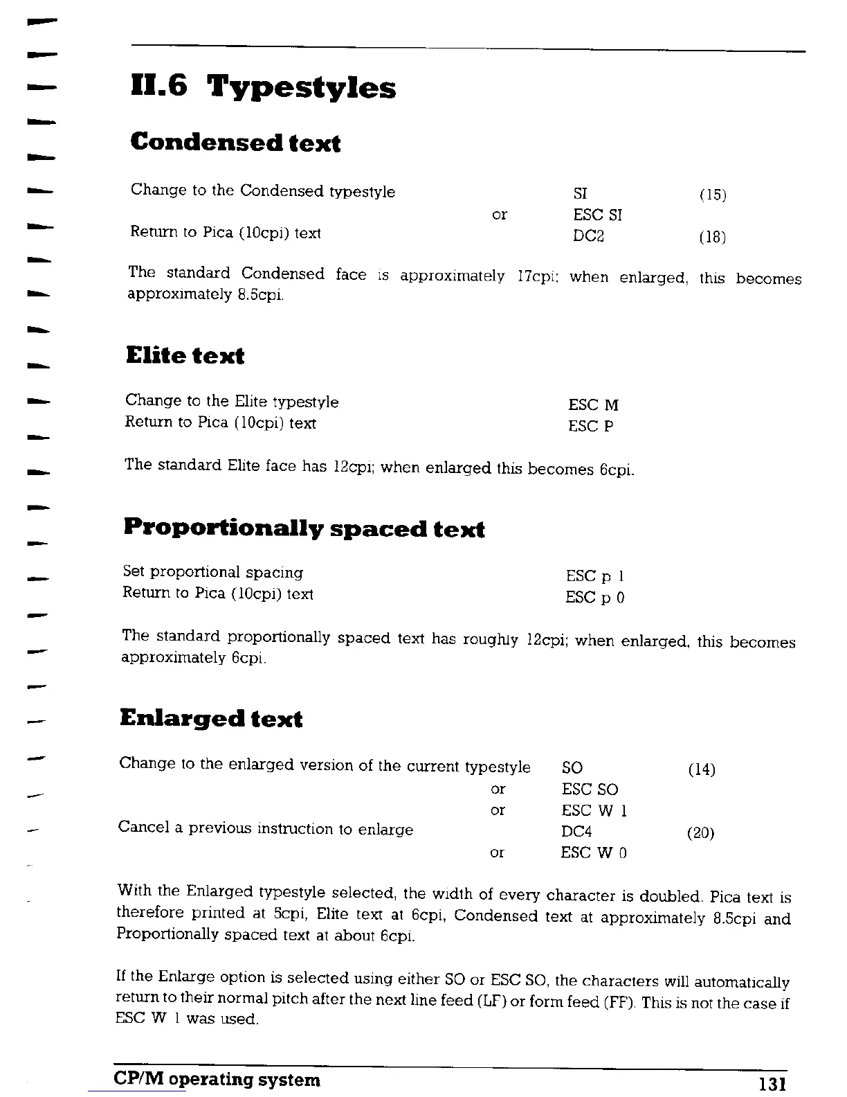 AMSTRAD PCW8256 - Typestyles; Condensed Text; Elite Text; Enlarged Text