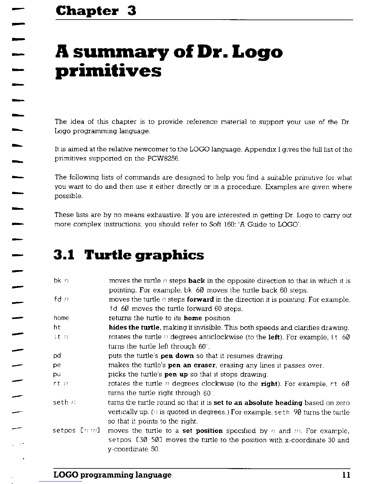 AMSTRAD PCW8256 - Chapter 3 A summary of Dr. Logo primitives; 3.1 Turtle graphics