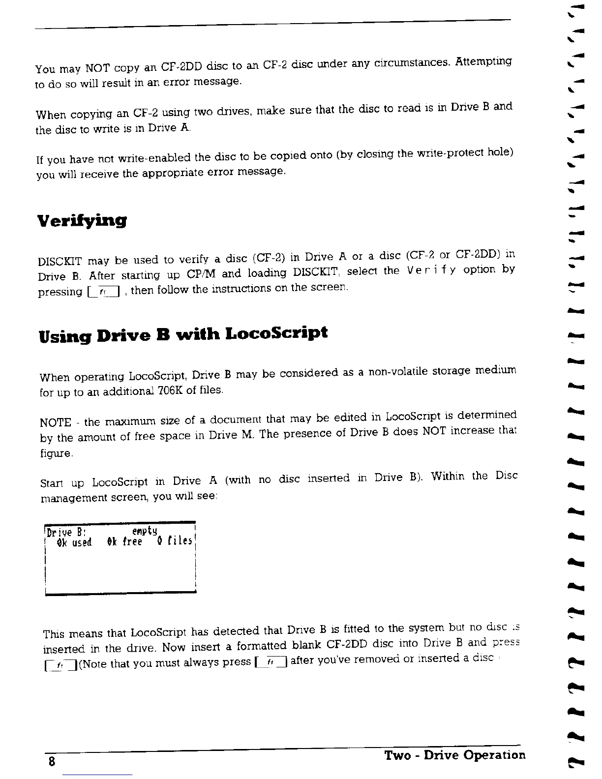 AMSTRAD PCW8256 - Verifying Discs; Using Drive B with LocoScript