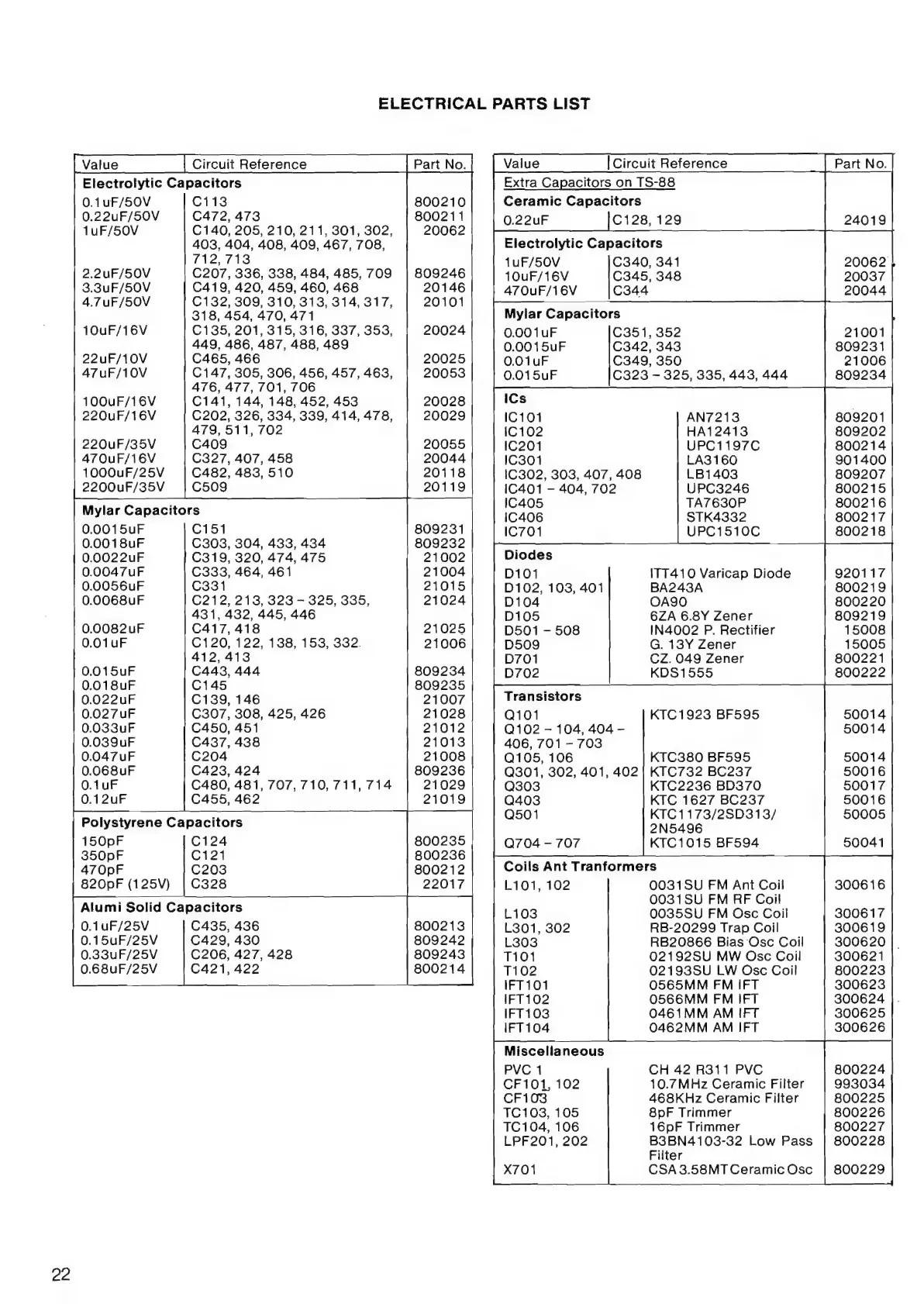 AMSTRAD TS80 - Electrical Parts List