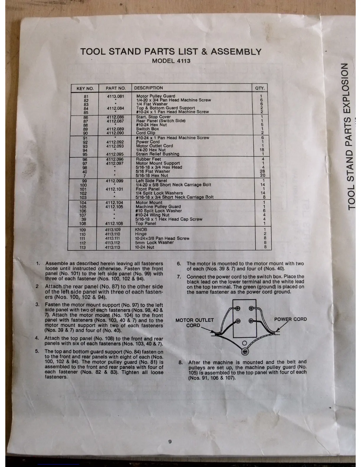 AMT 4113 - Tool Stand Parts List & Assembly