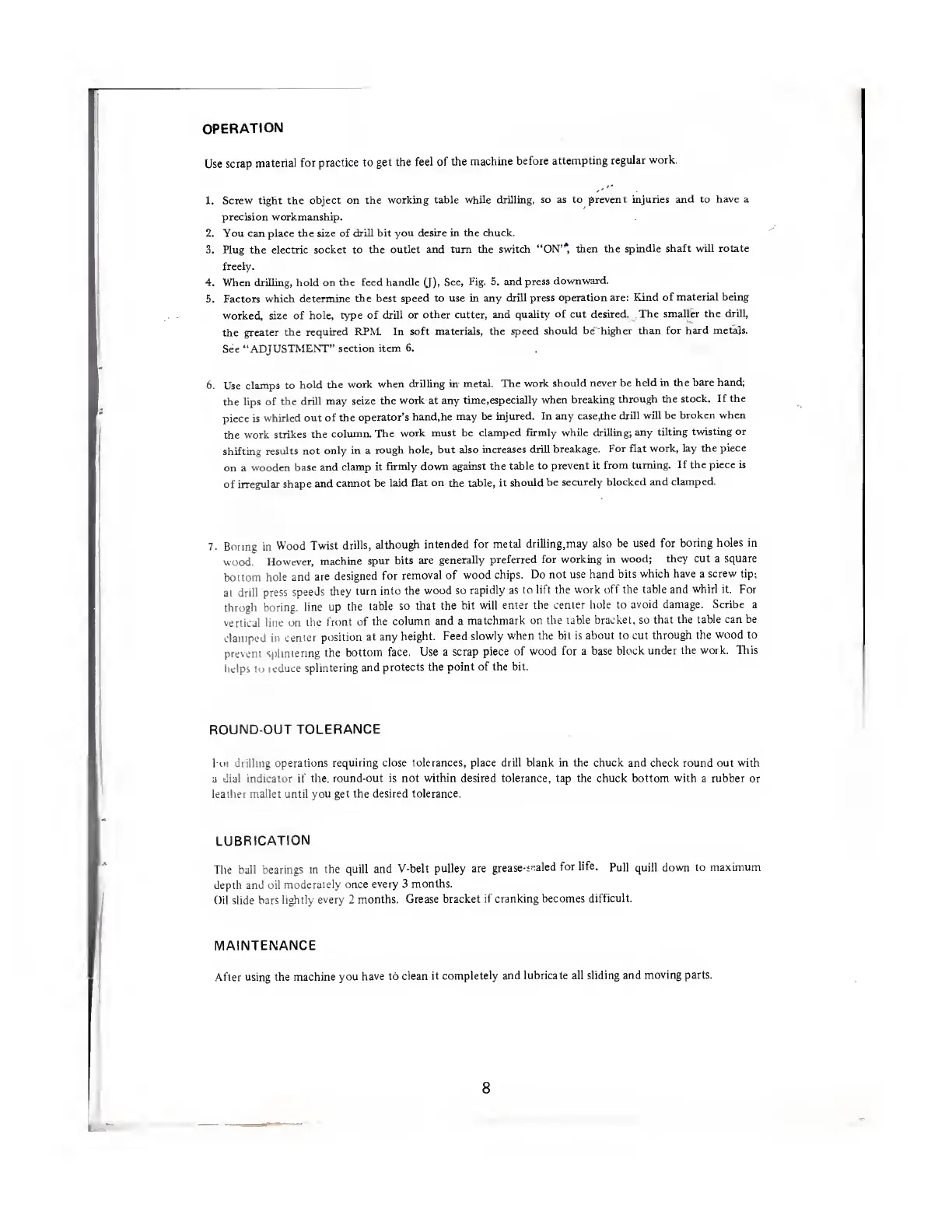 AMT 4562 - Operation; Round-Out Tolerance; Lubrication; Maintenance