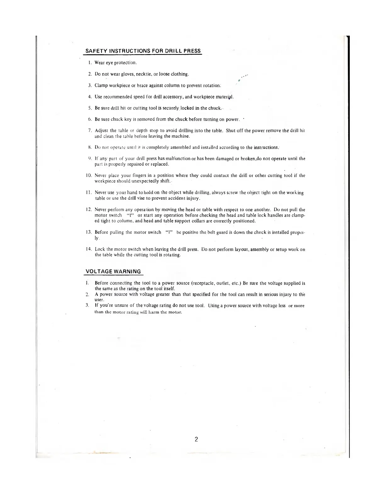 AMT 4562 - Safety Instructions for Drill Press.2; Voltage Warning
