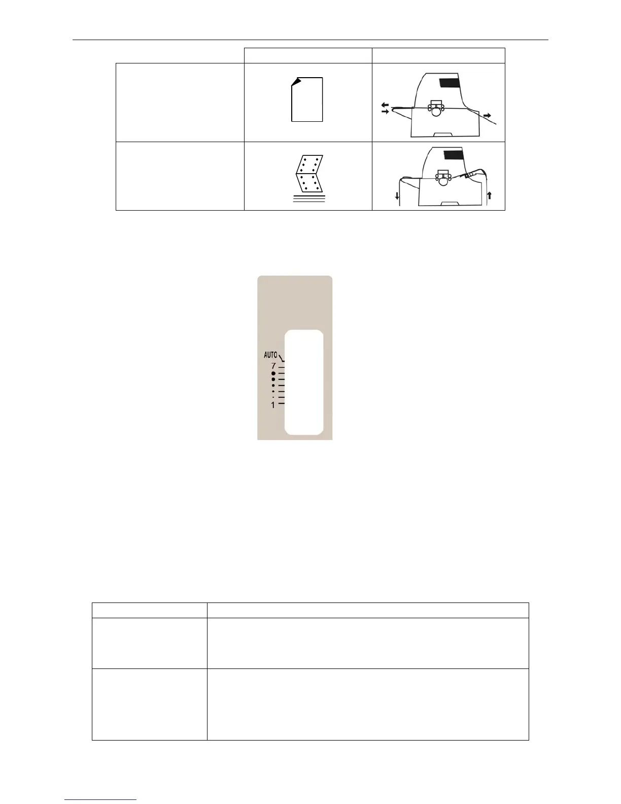 1. When the lever is in AUTO position, the printer will measure the paper thickness before printing