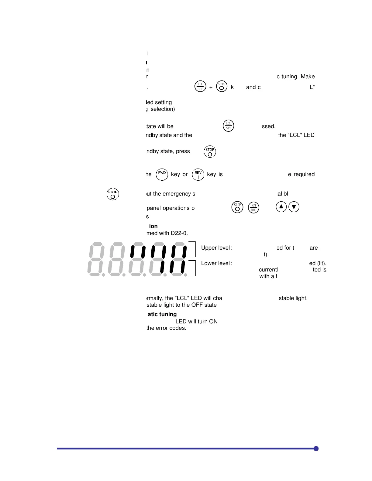 When the automatic tuning ends normally, the "LCL" LED will change from a flicker to a stable light.