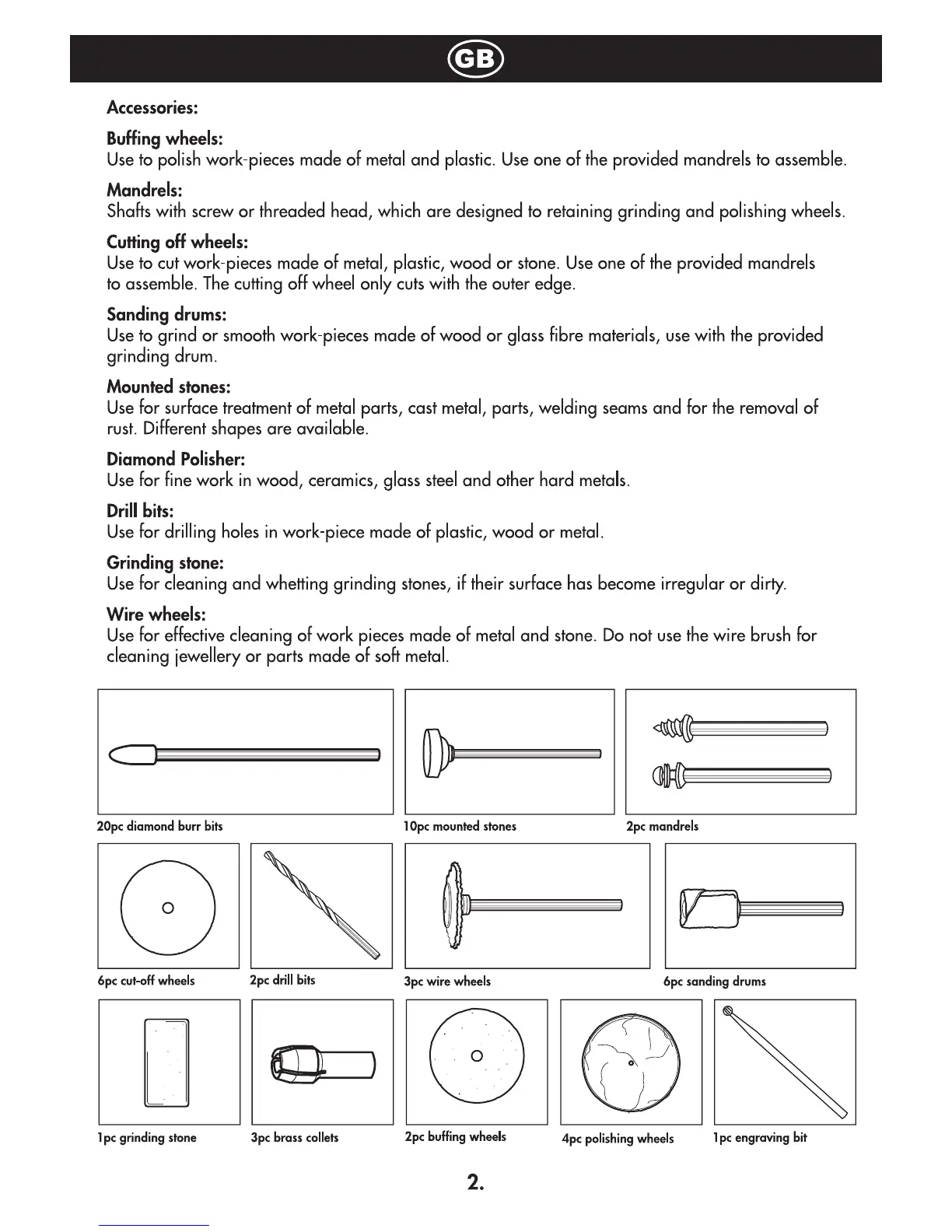 Amtech V2560 - Accessories Guide; Buffing wheels; Mandrels; Cutting off wheels