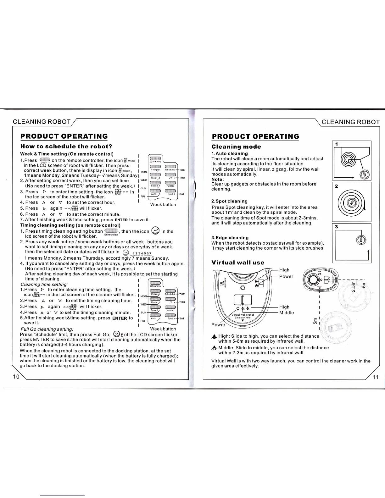 The robot will clean a room automatically and adjust