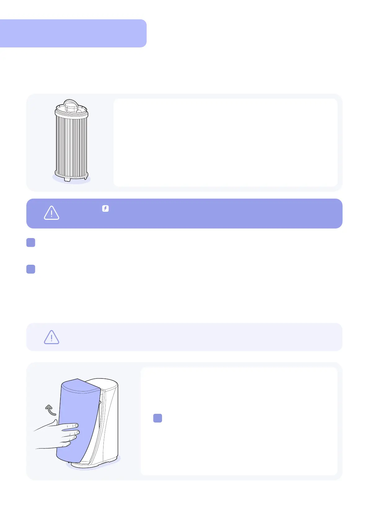 Unplug the Power Adapter from the wall outlet to prevent electric shocks while the lter is being