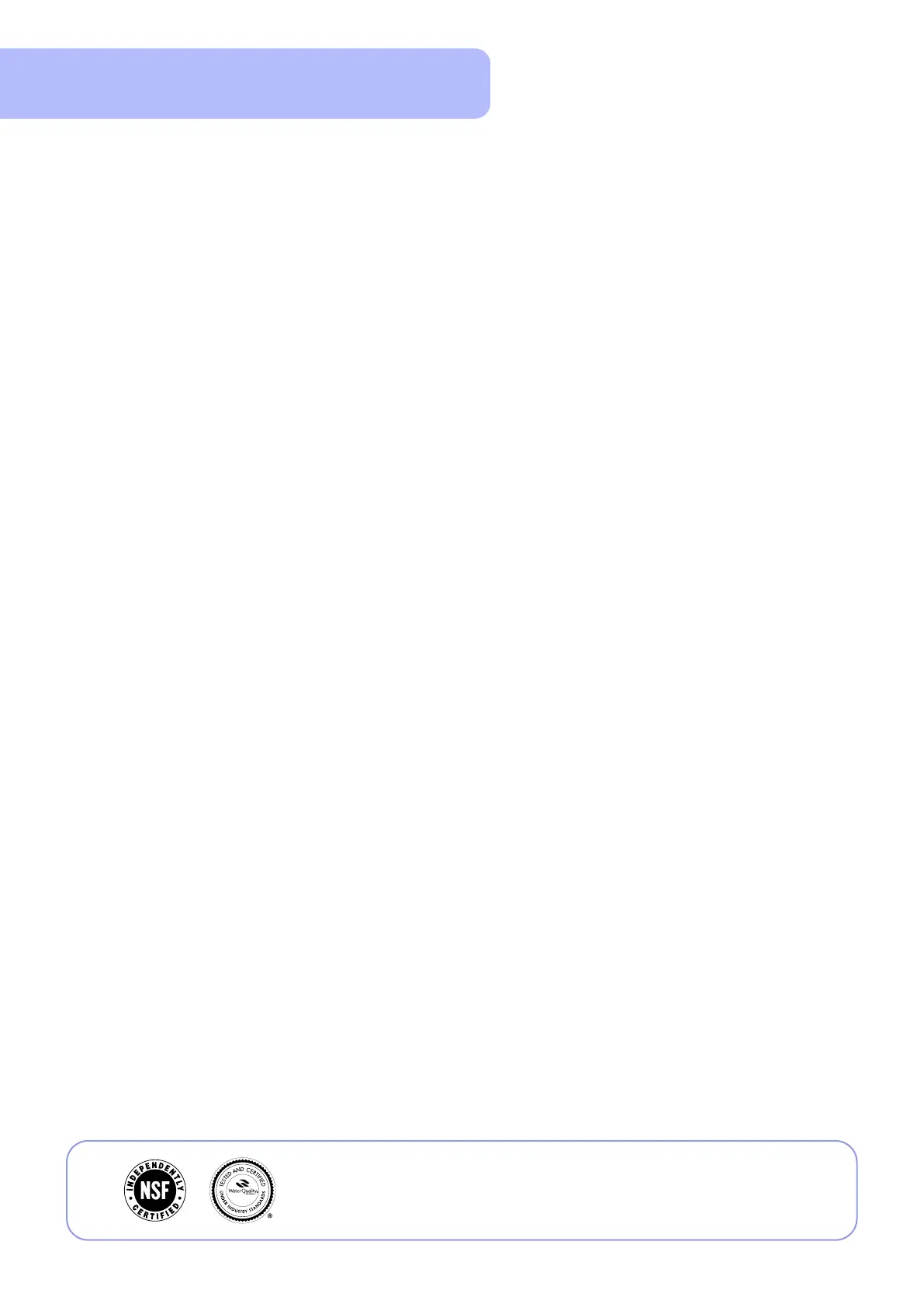 System Tested and Certied by NSF International and WQA against