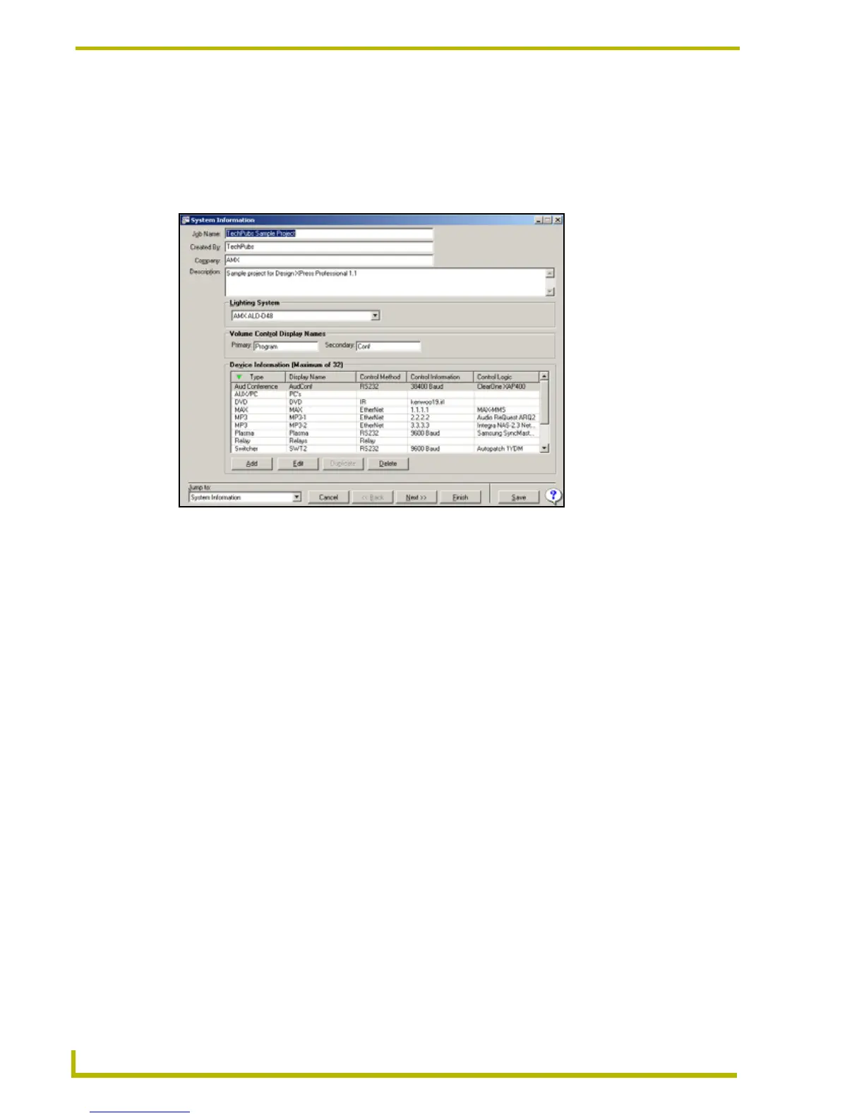 program the control system. Double-click on any device in the list to access the Device
